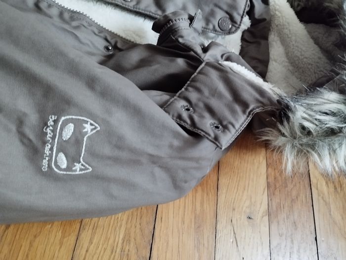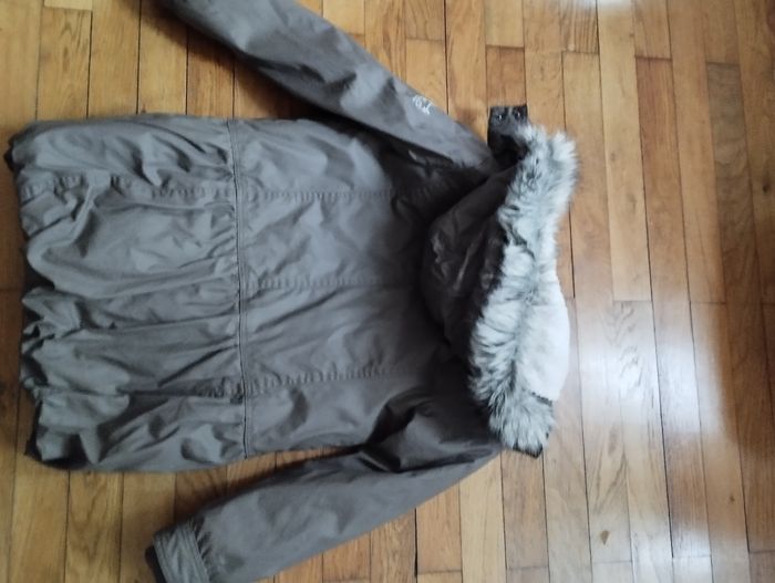 Très joli manteau long 12 ans tape à l'oeil. Chaud et imperméable, intérieur polaire ainsi que dans la capuche. Effet légèrement bouffant en bas. Coloris marron taupe. En très bon état