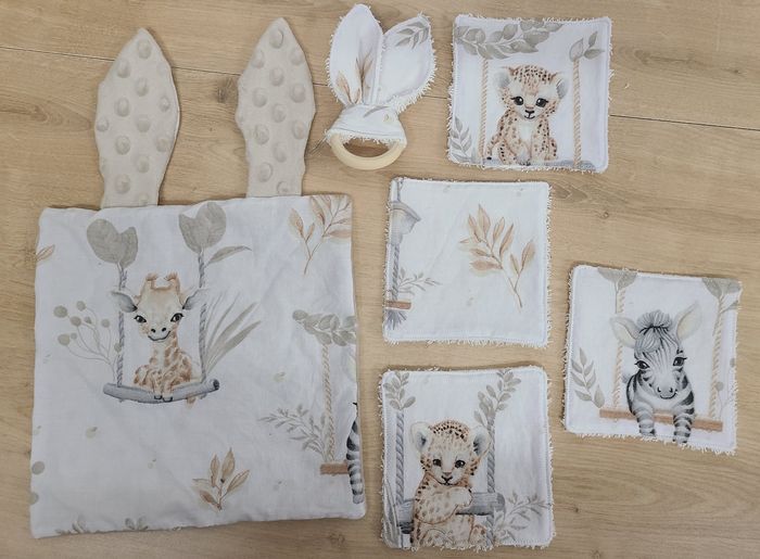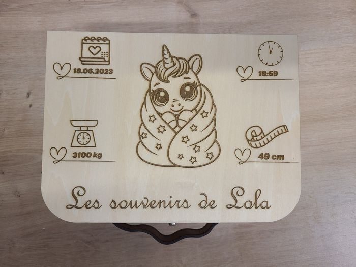 💜✨ NOUVEAUTÉ – Boîte de naissance souvenirs personnalisable ✨🌿 À la recherche d’un cadeau de naissance unique, doux et rempli d’émotion ? 💛 Découvrez notre jolie boîte de naissance en bois avec gravure personnalisable, idéale pour conserver les plus précieux souvenirs de bébé. 📏 Dimensions de la boîte : 23 cm x 17 cm x 9 cm de hauteur Un format parfait pour garder les premiers trésors de bébé (bracelet de maternité, tétine, souvenirs…). 🎁 Le coffret comprend : ✨ 1 doudou de naissance en coton & minky tout doux ✨ 1 anneau de dentition ✨ 4 lingettes lavables ✨ 2 gants de toilette enfant (1 en éponge de bambou & 1 en éponge classique) ✨ 1 débarbouillette ✨ 1 gant débarbouillette Le tout assorti dans un magnifique tissu animaux sauvages aux tons beige, mixte et intemporel 🤍 💰 Le lot complet : 35€ 🌸 Personnalisation sur la boîte possible selon vos envies ! Prénom, date de naissance, petit mot… tout est possible ✨ Vous pouvez également ajouter : • Bavoir : 5€ • Protège carnet de santé : 9€ • Protège livret de famille : 7€ • Tapis de change : 20€ (29€ avec rembourrage) • Bonnet bébé : 4€ • Coussinets d’allaitement : entre 4€ et 6€ selon la taille Ou autres accessoires. 🎨 Chaque article peut être personnalisé selon vos goûts (tissus, couleurs, prénom…). 💌 N’hésitez pas à me contacter en message privé pour créer votre coffret sur mesure.