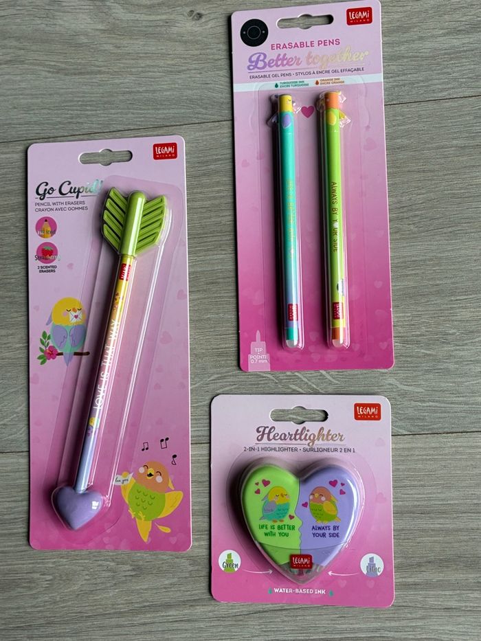 Je vends plusieurs articles neufs de la collection Legami Saint-Valentin 2026. • Lot de 2 stylos effaçables et rechargeables Legami Encre turquoise et orange, pointe 0,7 mm, écriture fluide et effaçable. • Surligneur 2 en 1 - Heartlighter Couleurs vert et lilas, pratique et original. • Crayon avec deux gommes parfumées - Go Cupid! Parfum fraise. Envoi très bien protégé 📦 Je vous fais partir le colis le jour même en mondial relay 📦🚚 Remise en main propre possible sur Nancy #Legami #legamipens #pennecancellabililegami #pennelegami #legamihalloween #pennelegamihalloween2025 #limitedeition #penne #pennelegamilimitededition #legami #legamimilano #saintvalentin #saintvalentin2026 #papeterie #papeteriekawaii #fournituresscolaires #styloseffaçables #styloslegami #surligneur #heartlighter #gocupido #gommesparfumées #ideeCadeau #cadeauneuf #neufavecetiquette