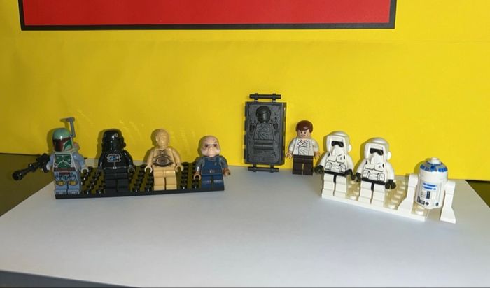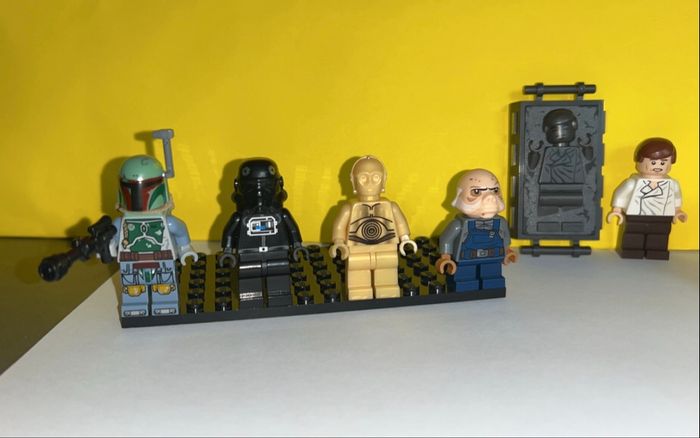 Lot de 8 figurines Star Wars authentique Lego En parfait état ! Le lot comprend : - Impérial Tie Fighter : SW035B - С-ЗРО - R2-D2 - Han solo : SW714 + tombe - Boba Fett : SW711 - Ugnaught : SW710 - Scout Trooper : SW005