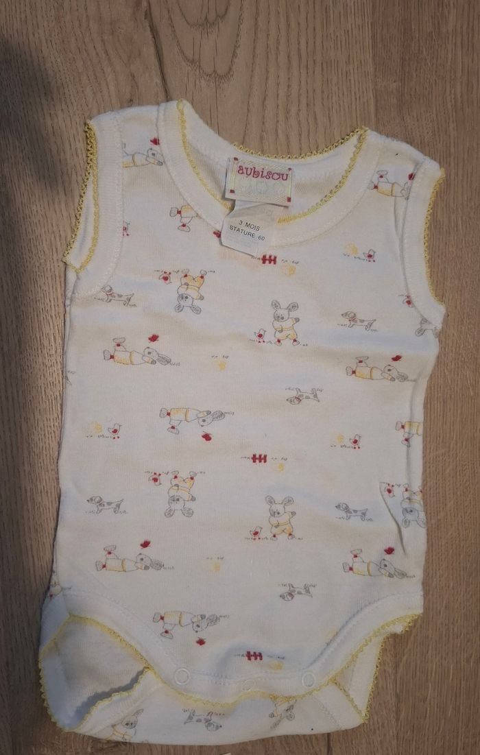 #loluxiagarcon3mois #loluxiafille3mois 1 body manches courtes et 1 body sans manche , marque Aubisou. Couleurs mixtes, unisexe. 100%coton. Jamais porté car saison décalée.