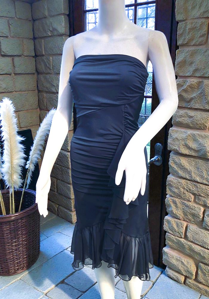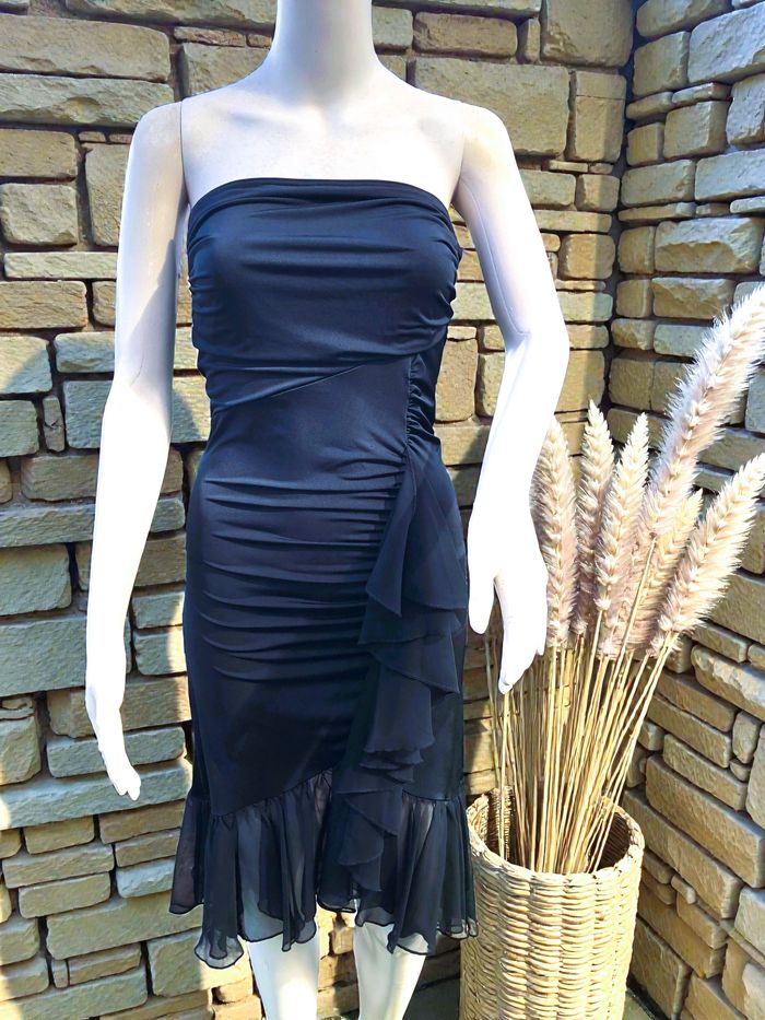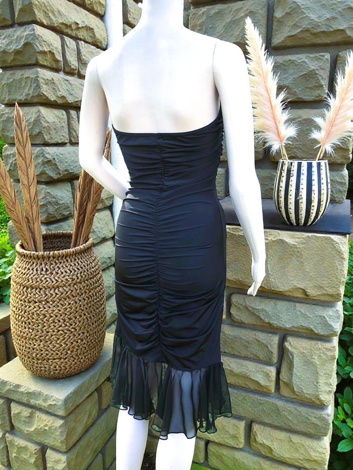 MARQUE : MORGAN*… (*Morgan De Toi) ÉTAT : EXCELLENT !!! TAILLE : S / 36 COLORIS : NOIR SATINÉ COMPOSITION : 100% POLYESTER PARTICULARITÉS : - Lanières Internes de Rangement - Fronce Centrale sur toute la Longueur du Dos - Volant Voile sur toute la Bordure & sur un Côté Avant - Bordure Asymétrique (Plus Longue Derrière que Devant) - Matière Extensible