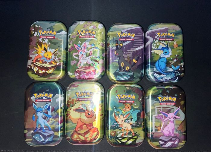 Bonjour, Je mets en vente ce Lot de 3 mini tins Évolutions Prismatiques. Illustration de vos choix. #pokemon