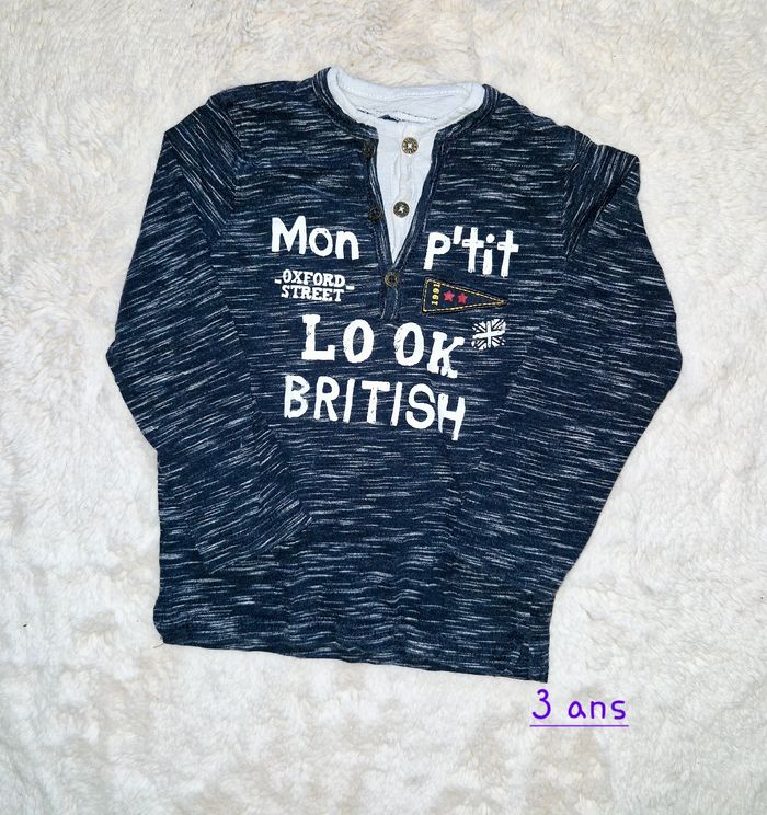T-shirt manches longues garçon taille 3 ans en très bon état pour 3 euros.