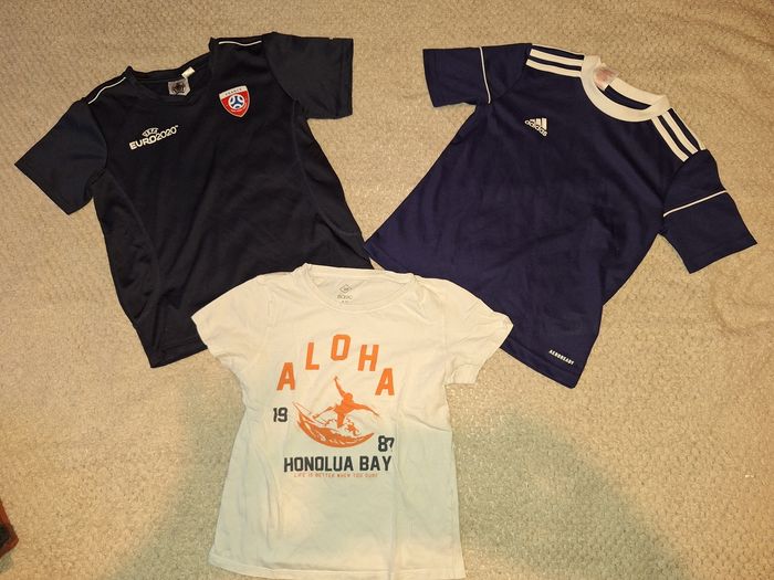 Lot comprenant : 4 sweats (1 en 9 ans, 3 en 10 ans mais taille 9 ans) 2 bas jogging Verbaudet 2 polos 2 t-shirt 2 maillots de foot