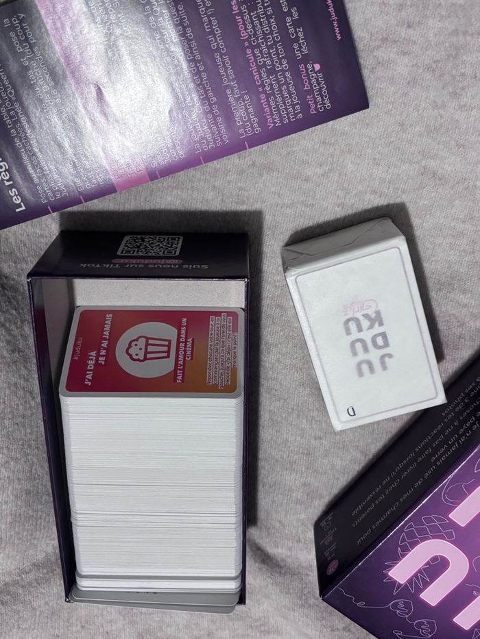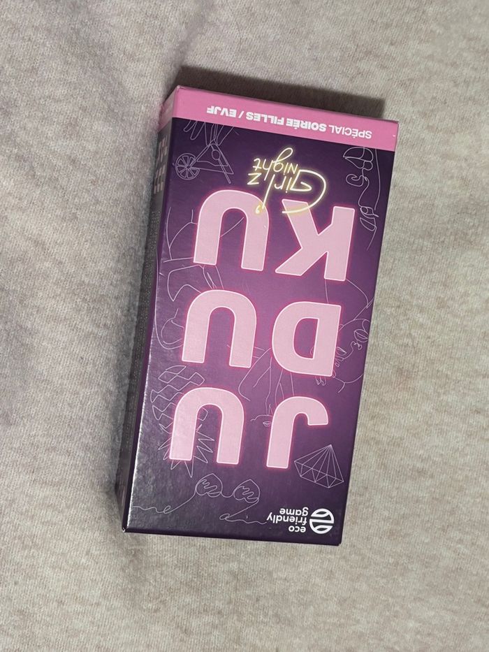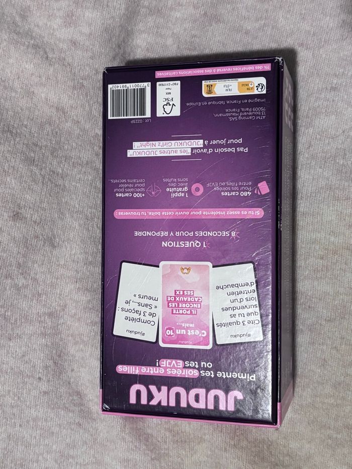 Jeu de société d’ambiance « girly », un paquet de cartes est encore emballé. Boîte de jeu légèrement abîmé sur les angles. Si vous souhaitez plus d’informations n’hésitez pas 🍹