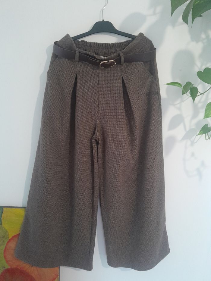 Beau pantalon tissus lainage chaud et tout doux taille du 38 au 44 motif pied de poule beige et marron très belle qualité longueur 102cm taille haute élastique au dos avec ceinture deux poches