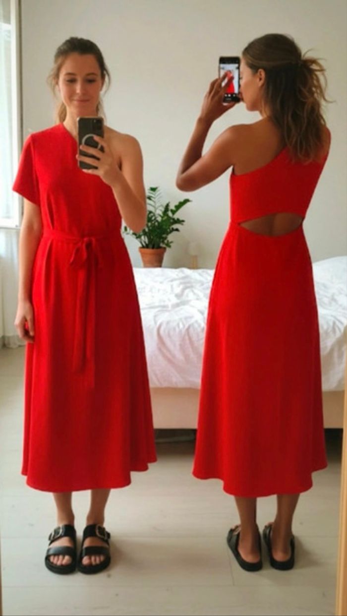 Robe mi longue ample Manches asymétriques Ceinture à la taille ajourée en bas du dos Jupe évasée Fermeture zippée sur le côté Prix magasin 295 euros Taille S Couleur noire Neuve avec étiquette # Claudie pierlot # asymétrique # robe noire # chic