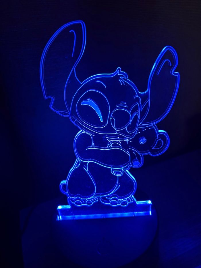 Veilleuse en 3D Stitch avec son doudou qui change de couleurs avec télécommande ou bouton tactile NEUVE
