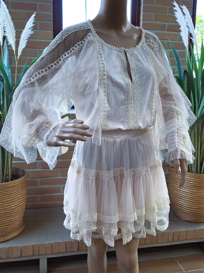 LILY MCBEE - ROBE FEMME BOHÉME CHIC DÉTAILS VOLANTS VOILE RÉSILLE & GUIPURES L - photo numéro 1