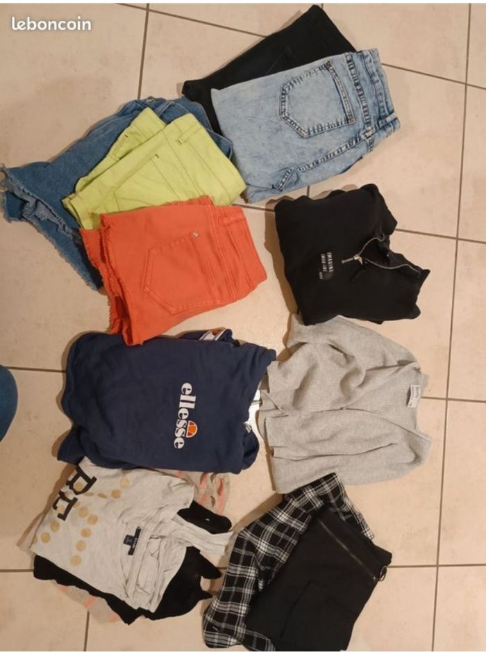 vends ce lot de vêtements pour fille très bon état en taille XS, comprenant différents articles de la marque Jennyfer, kiabi, elles se.... - Type de produit : Lot de vêtements - Taille : XS - Univers : Ado /fille - Sexe : Fille - Caractéristiques : Jeans, T-shirts, Sweat, Pantalon, jupe, gilet N'hésitez pas à me contacter pour plus d'informations ou de photos.