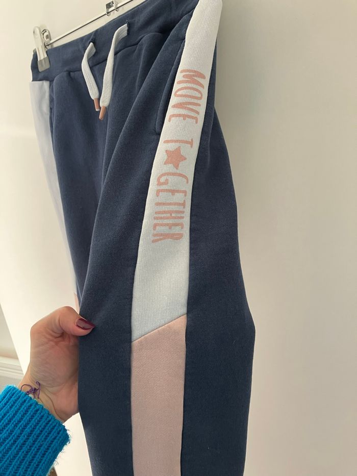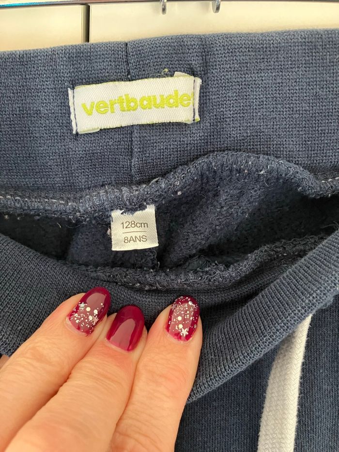 Pantalon de jogging moltonné à l’intérieur . Fille. Taille 8 ans. Couleur bleu marine / rose/ blanc. En très bon état. Pas de trous ni de taches. Marque Vertbaudet