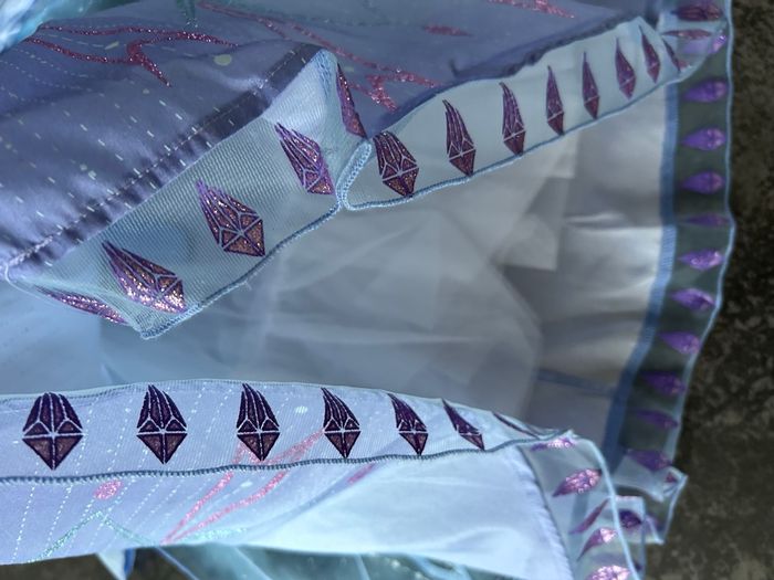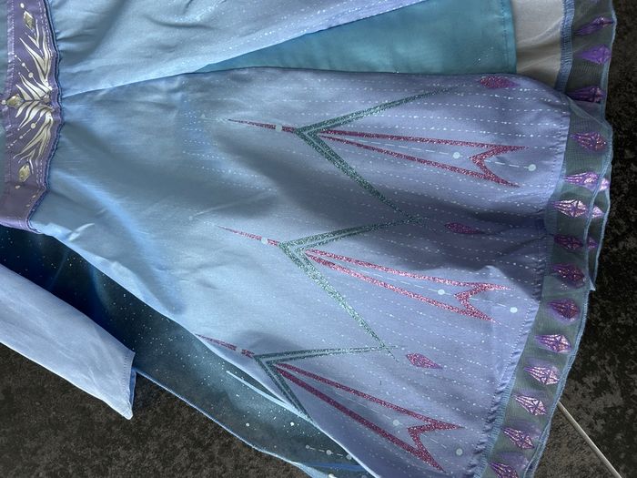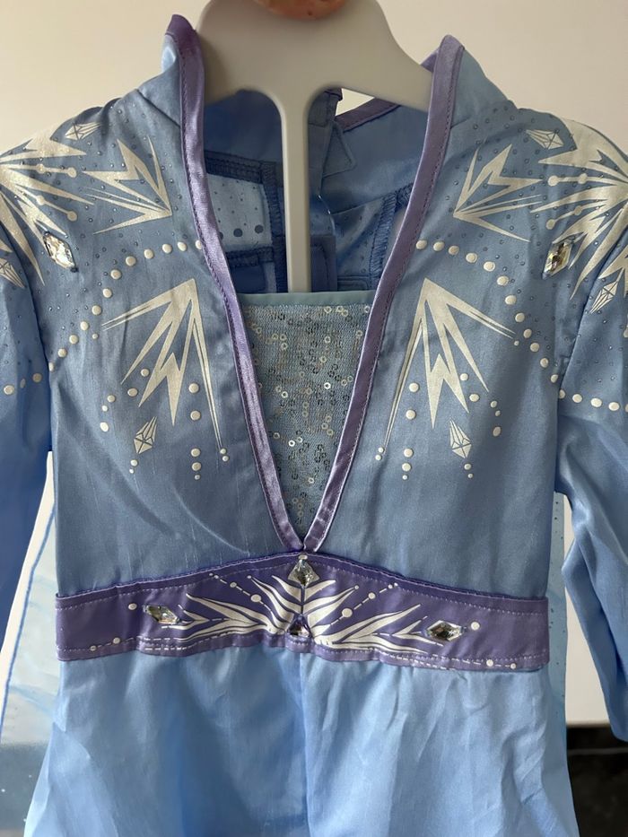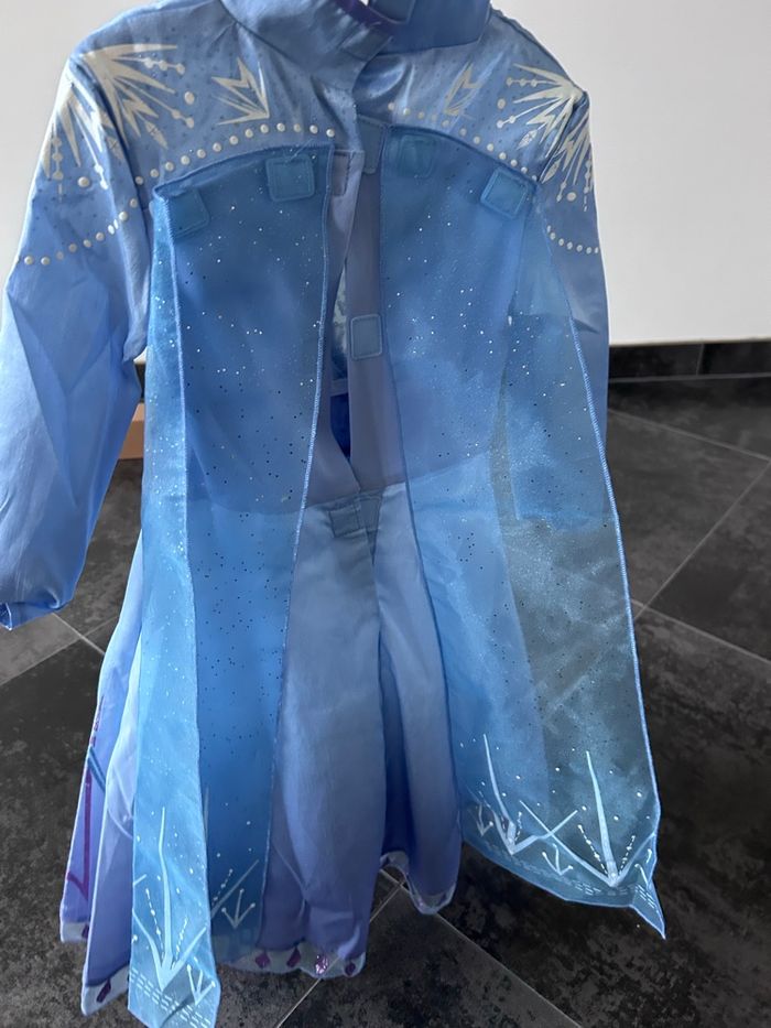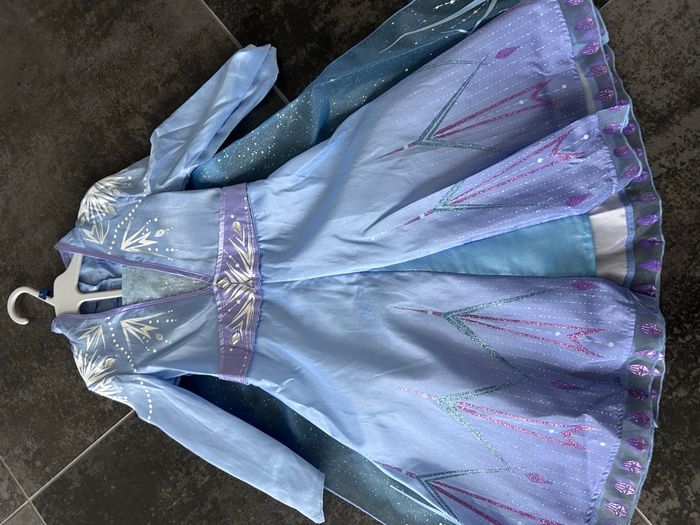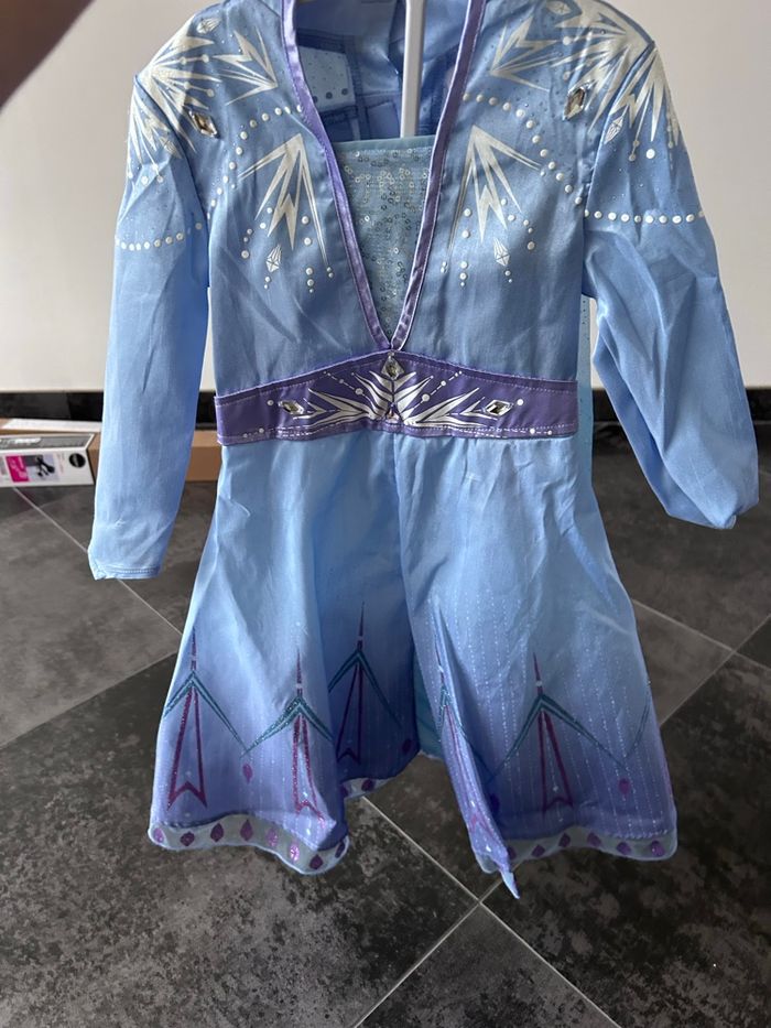 Déguisement reine de neige 3ans Elsa Comme neuf J’ai enlevé l’étiquette pour lui mettre mais il était trop petit ducoup juste essayé 5-10min car elle voulait le porter..