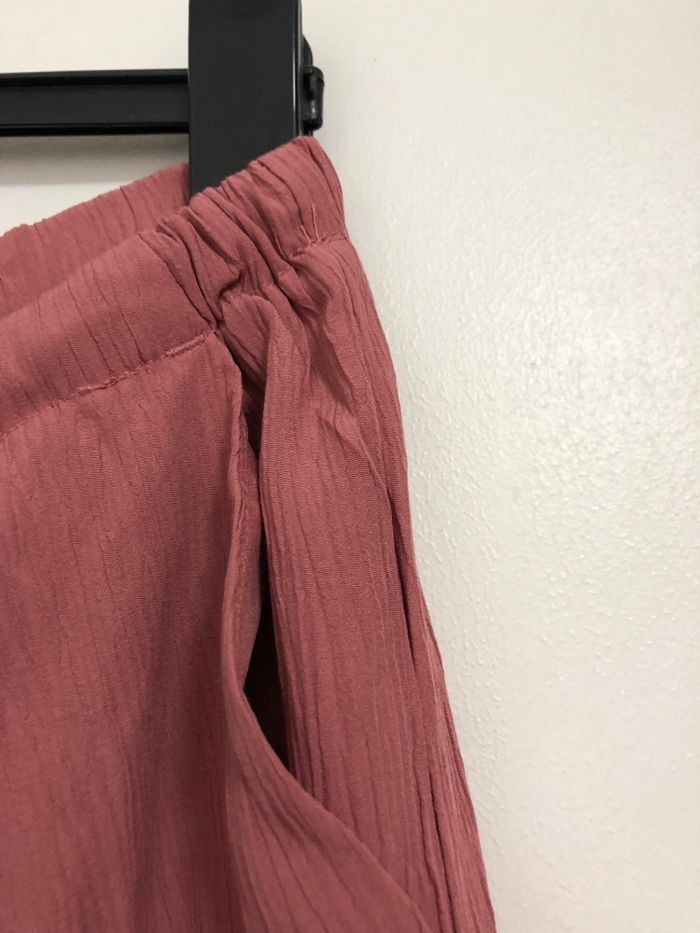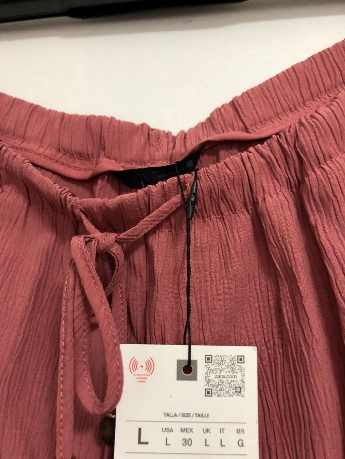 Bonjour je vends un superbe beau pantalon taille haute fluide à jambe large de couleur rose/ rouge / marsala et de la marque Zara. Il est neuf avec étiquette C’est un taille L Très belle couleur Taille haute Taille élastique ajustable avec cordon Pantalon à jambe large Super beau porté Deux poches avant Détail de tissu effet froissé Le pantalon se porte dans la vie de tous les jours Au bureau / école Pour les soirées les sorties Plage été etc… Il est Ultra tendance s’accorde facilement avec tout basket / botte / sandale / sweat / chemise / t-shirt / body blazer / veste en cuir etc.. n’hésitez pas à consulter mes autres annonces en ligne