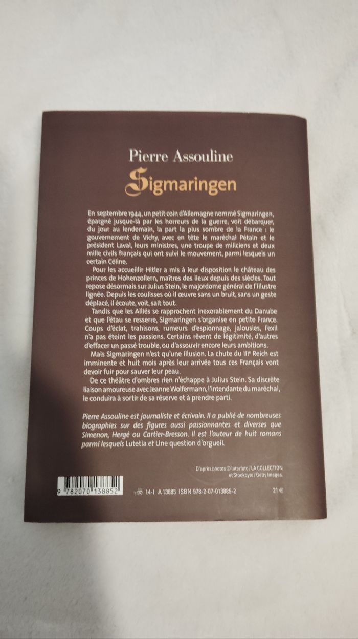 En septembre 1944, un petit coin d'Allemagne nommé Sigmaringen, épargné jusque-là par les horreurs de la guerre, voit débarquer, du jour au lendemain, la part la plus sombre de la France : le gouvernement de Vichy, avec en tête le maréchal Pétain et le président Laval, leurs ministres, une troupe de miliciens et deux mille civils français qui ont suivi le mouvement, parmi lesquels un certain Céline. Pour les accueillir Hitler a mis à leur disposition le château des princes de Hohenzollern, maîtres des lieux depuis des siècles. Tout repose désormais sur Julius Stein, le majordome général de l'illustre lignée. Depuis les coulisses où il oeuvre sans un bruit, sans un geste déplacé, il écoute, voit, sait tout. Tandis que les Alliés se rapprochent inexorablement du Danube et que l'étau se resserre, Sigmaringen s'organise en petite France. Coups d'éclat, trahisons, rumeurs d'espionnage, jalousies, l'exil n'a pas éteint les passions. Certains rêvent de légitimité, d'autres d'effacer un passé trouble, ou d'assouvir encore leurs ambitions. Mais Sigmaringen n'est qu'une illusion. La chute du IIIᵉ Reich est imminente et huit mois après leur arrivée tous ces Français vont devoir fuir pour sauver leur peau. De ce théâtre d'ombres rien n'échappe à Julius Stein. Sa discrète liaison amoureuse avec Jeanne Wolfermann, l'intendante du maréchal, le conduira à sortir de sa réserve et à prendre parti.