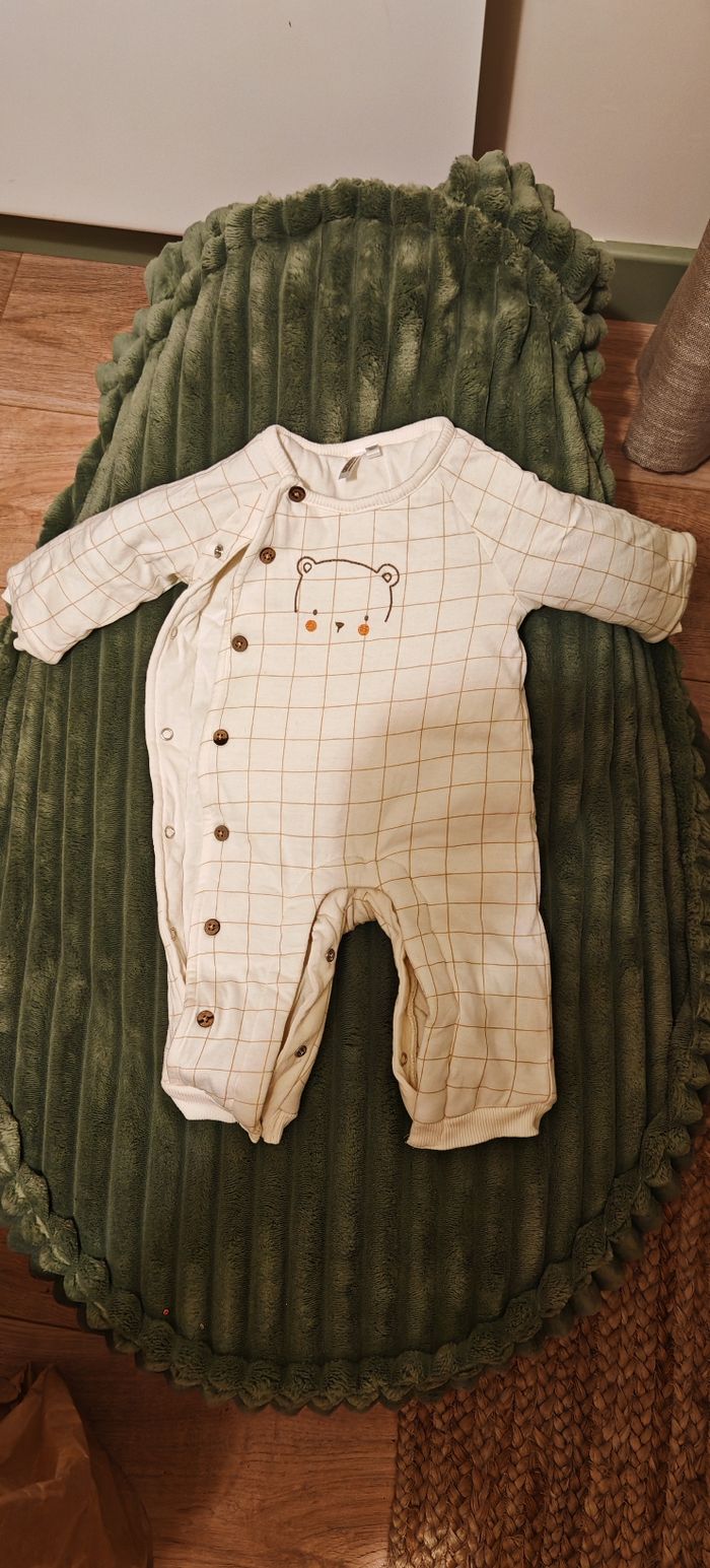 Lot 5 vêtements bébé garçon 1 mois – orchestra Description : Vends lot de vêtements bébé garçon en taille 1 mois comprenant : ✅ 1 sur pyjama ourson et 1 sur pyjama herisson ✅ 1 salopette chaude ourson ✅ 2 bodies a col haut Marques : orchestra Vêtements en bon état, sans taches ni trous. Portés par un seul bébé. Maison non-fumeur.