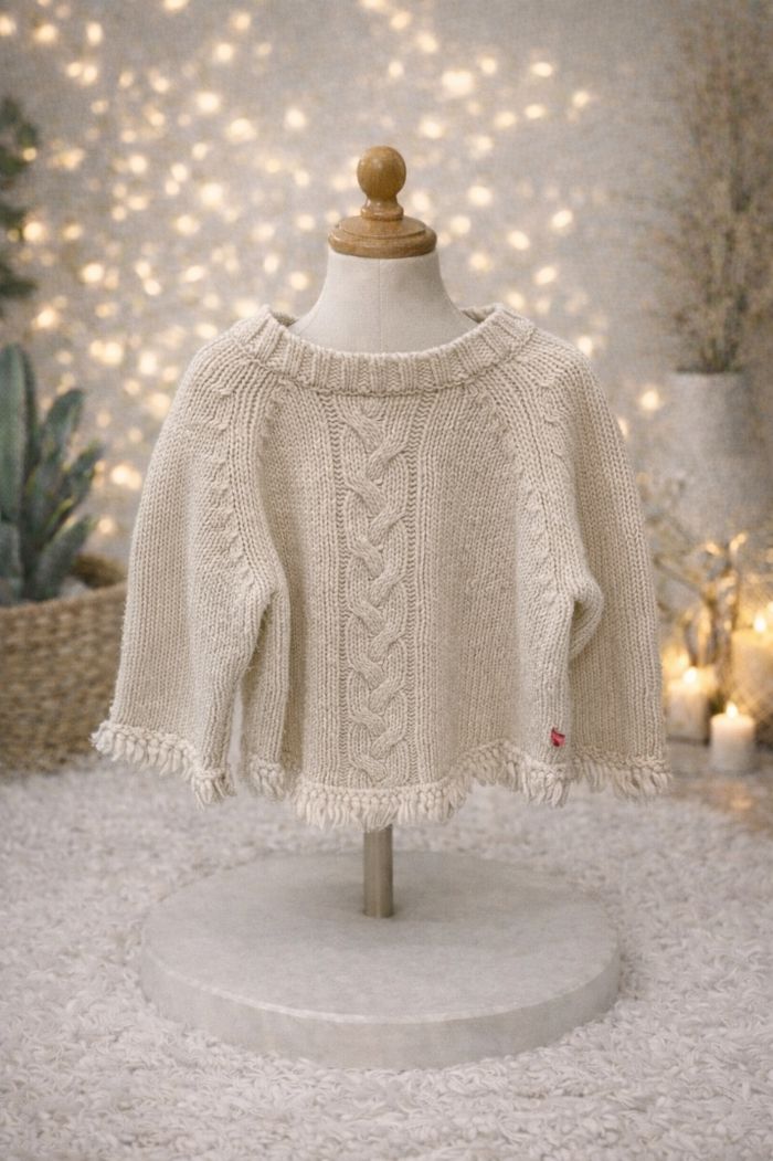 Très joli pull en grosse maille torsadée, couleur écru / beige clair. Coupe ample et confortable, parfait pour l’automne et l’hiver ❄️ Détails frangés en bas et aux manches qui ajoutent une touche bohème. ✨ Doux et agréable à porter ✨ Style intemporel ✨ Facile à assortir (robe, legging, jean…) 📏 Taille : 36 mois 🎨 Couleur : écru 👕 Très bon état
