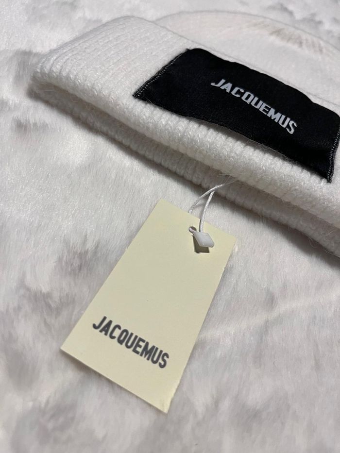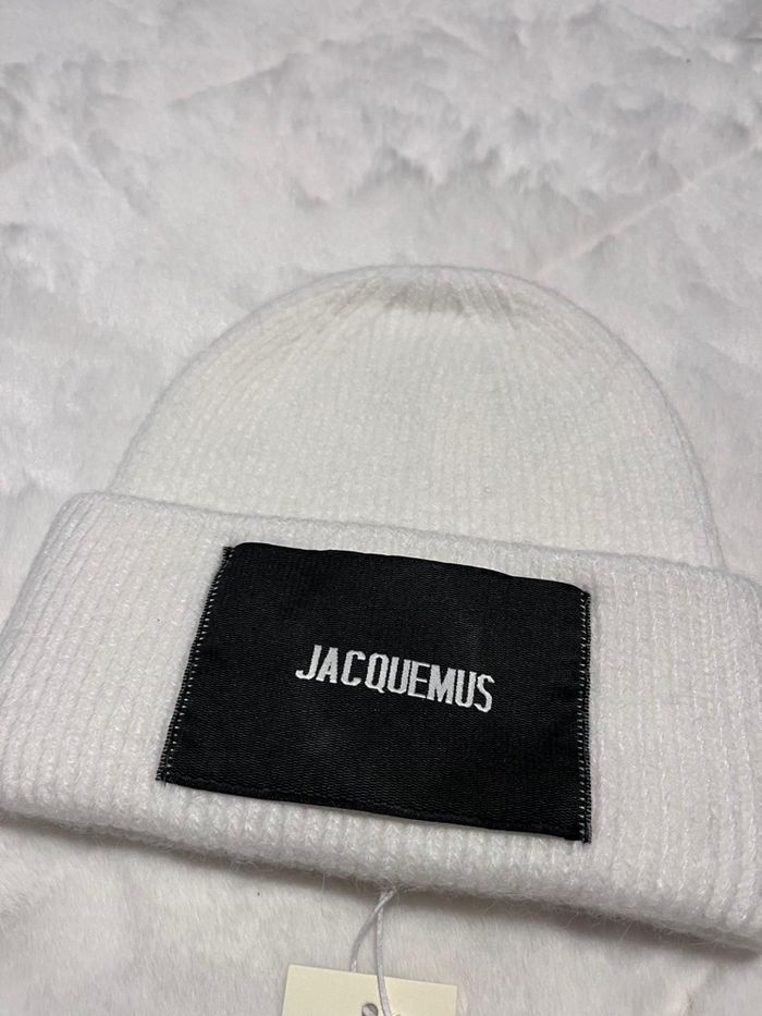 🧢 Bonnet Jacquemus blanc Neuf avec étiquette 🏷️ Très belle pièce, matière douce et confortable. Logo noir Jacquemus à l’avant. Couleur blanc cassé, facile à assortir. Jamais porté. État impeccable. Envoi rapide et soigné 📦