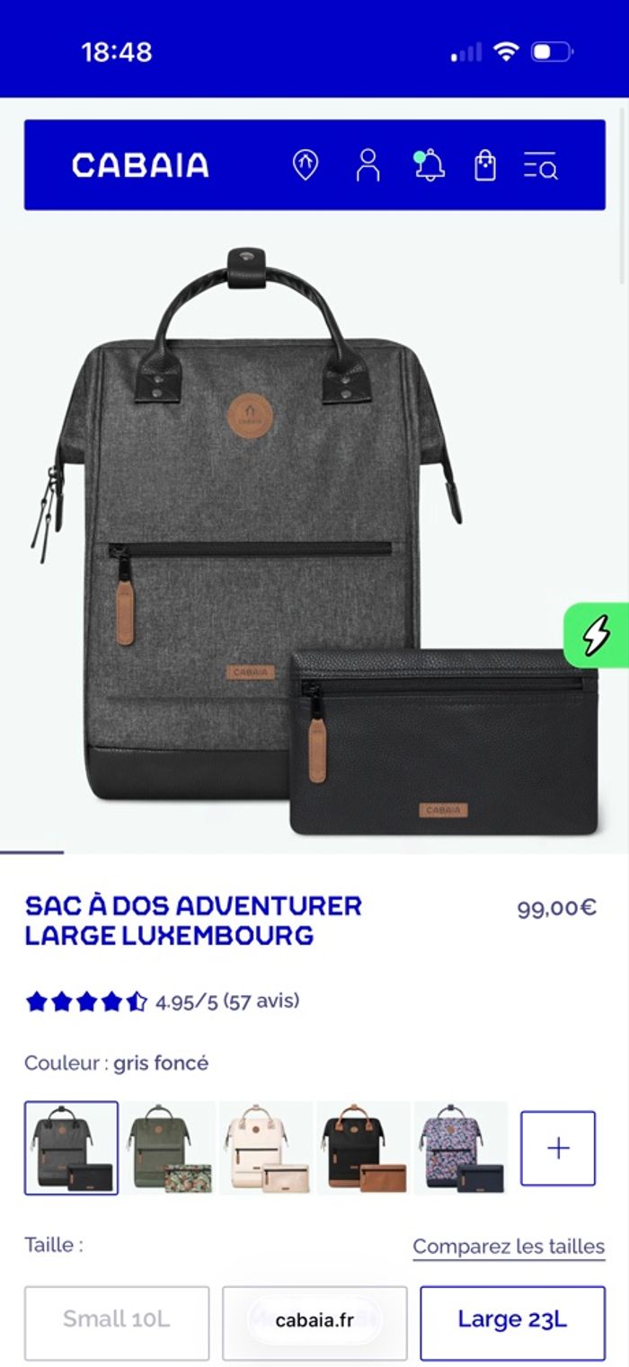 Sac neuf avec étiquette Jamais servi Fourni avec une pochette noire en plus Prix sur site cabaia 99,00€