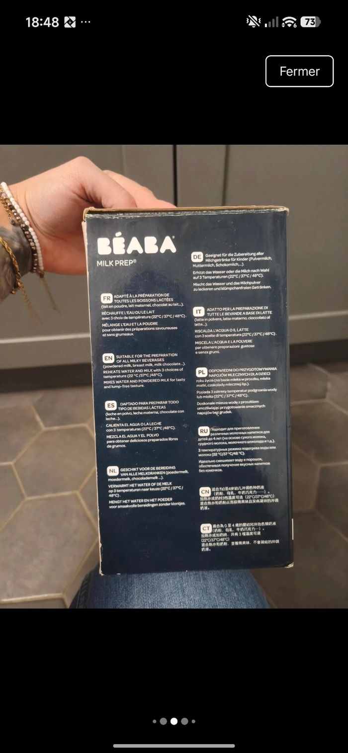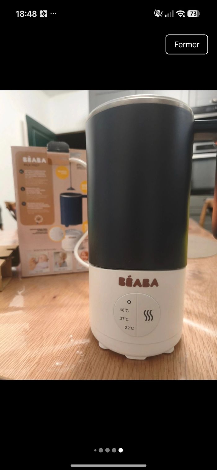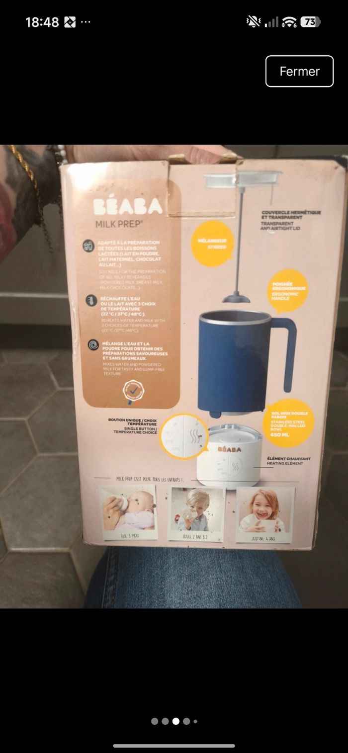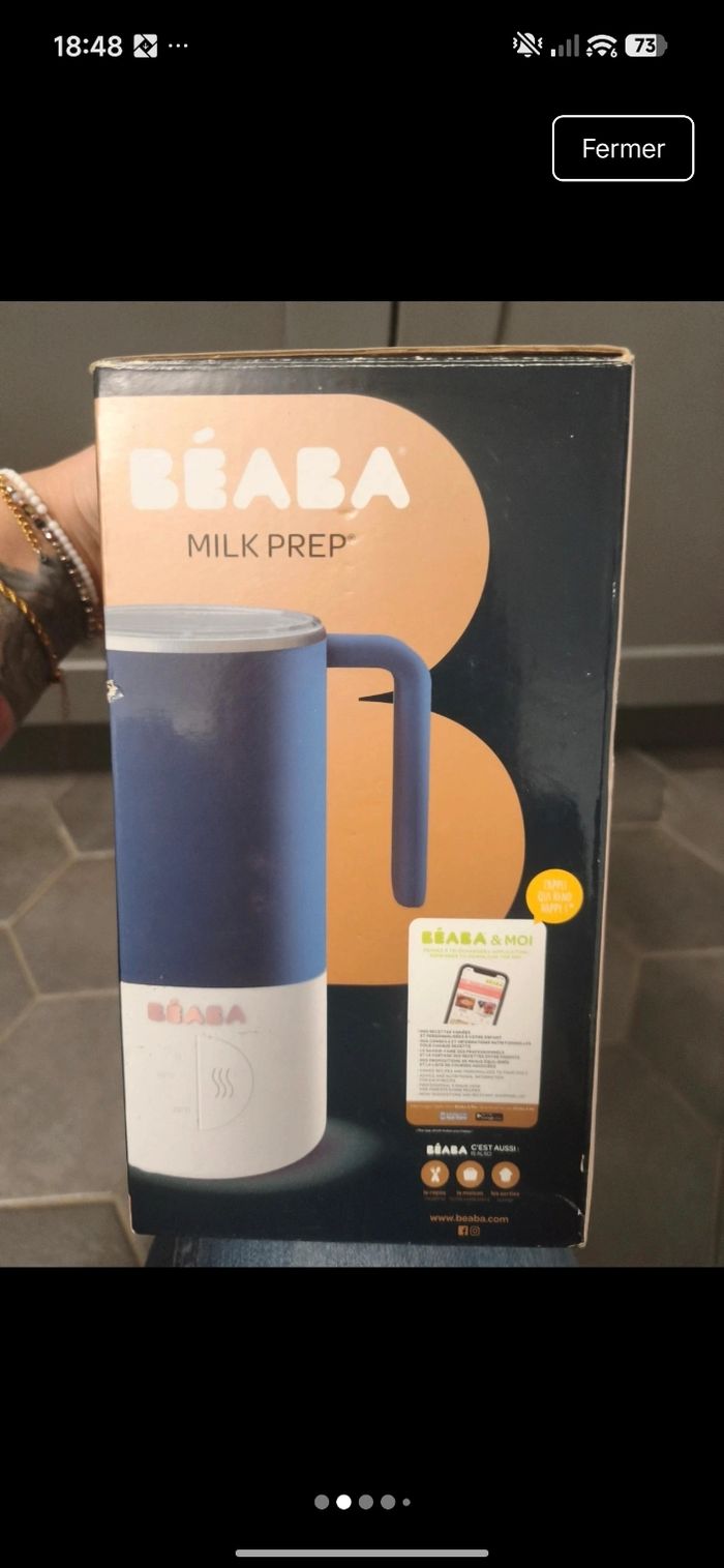 Je vends un préparateur de biberons Béaba Milk Prep, idéal pour préparer les biberons rapidement et à la bonne température. ✔️ Chauffe et maintient l’eau à 22°C, 37°C ou 48°C ✔️ Préparation rapide et pratique, même la nuit ✔️ Simple d’utilisation ✔️ Appareil propre, fonctionnel et bien entretenu Vendu avec sa boîte d’origine. Parfait pour gagner du temps au quotidien avec bébé. 💰 Prix : 40€