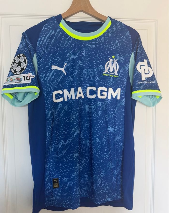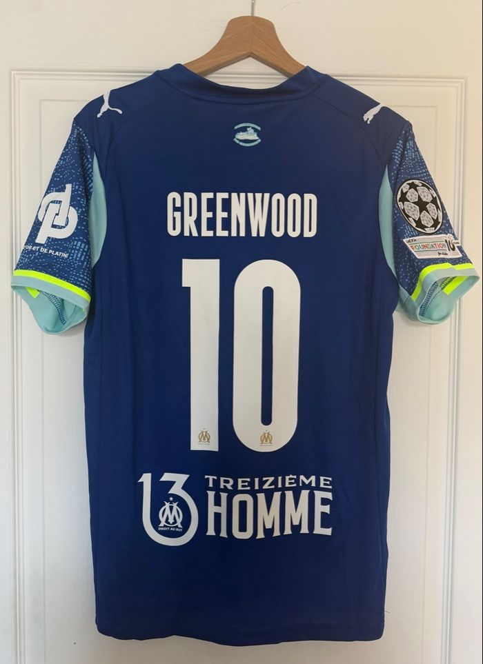 Olympique de Marseille third saison 2025/2026 Patch ligue des champions Patch d'or et platine Patch 13 eme homme Floqué GREENWOOD 10 Taille M (dispo également en S M L et XL sur demande) Envoi très rapide sous 24 h