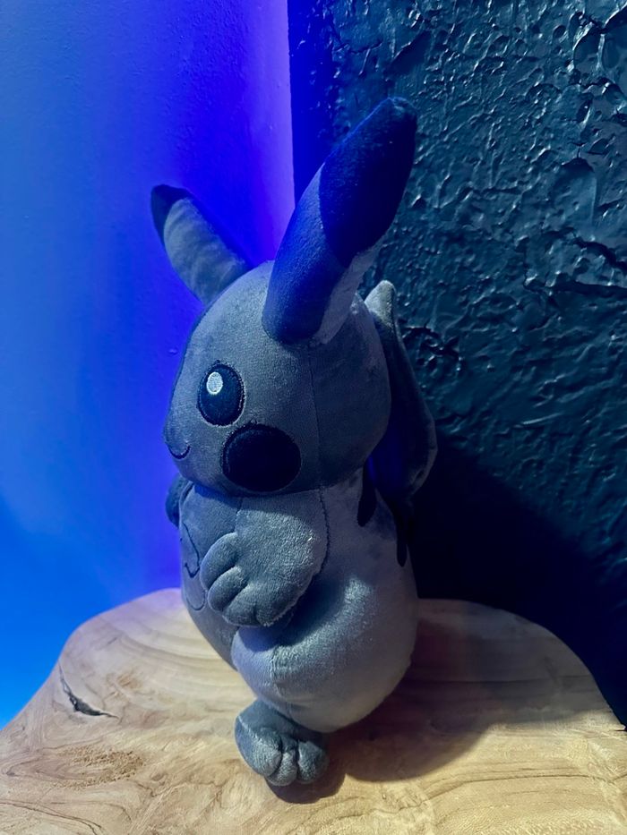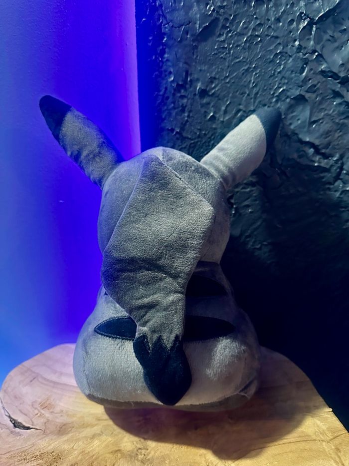 Peluche Pikachu Pokémon dans une version sombre / noir, originale et peu commune. Très douce, en très bon état, sans taches ni déchirures. Parfaite pour un fan de Pokémon, une collection ou en décoration 🧸✨ Produit conforme aux photos. Maison non-fumeur. Envoi rapide et soigné 📦