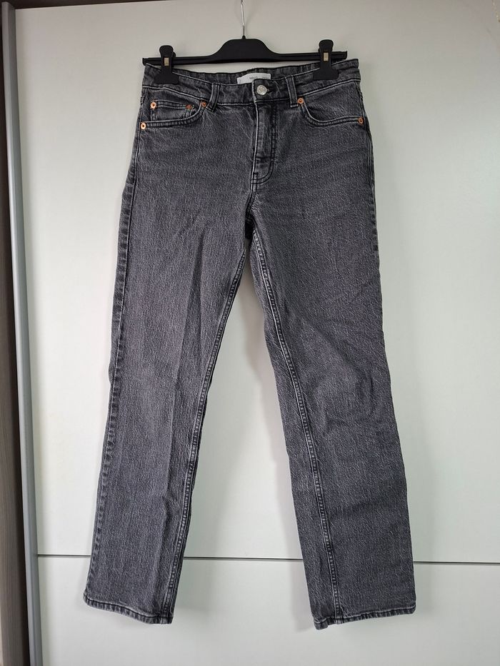 Je vends ce jeans Mango gris, taille moyenne coupe droite Très peu porté, en très très bon état