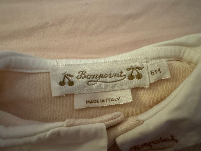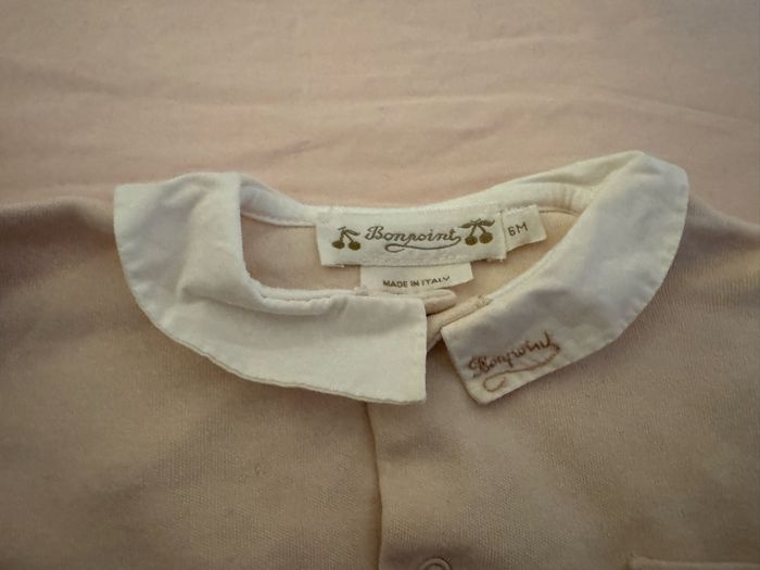 Magnifique dors-bien d'été Bonpoint, taille 6 mois, * Taille : 6M * Couleur : blanc / écru * Col rond élégant signature * Petite poche poitrine * Pressions sur toute la longueur + entrejambe * Made in Italy Modèle léger, parfait pour le printemps / été ou pour une tenue de jour élégante. Très belle coupe avec fronces au dos, finitions soignées typiques de la marque V Très bon état V Pas de taches ni défauts visibles Prix en boutique : 135 € Pour l'achat du pijama, un body petit bateaux taille 6 mois offert (photo disponible)