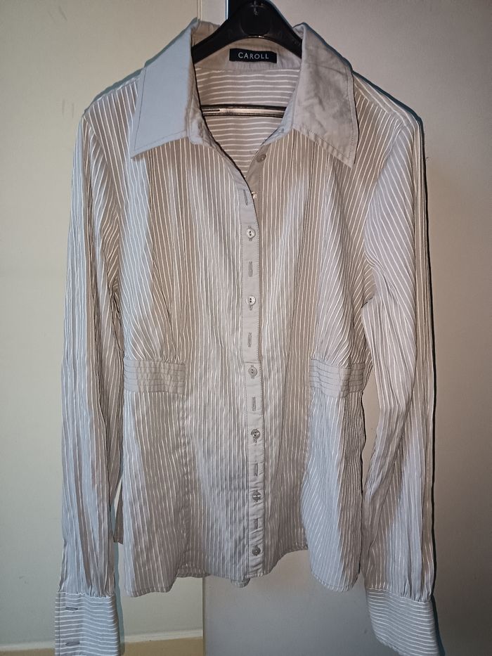 Chemise grise et blanche rayée 👖👕 Beaucoup d'autres articles à -de 5€ dans mon dressing venez y faire un tour. 👛 Profitez et achetez en lot je fais des prix pour plusieurs articles achetés