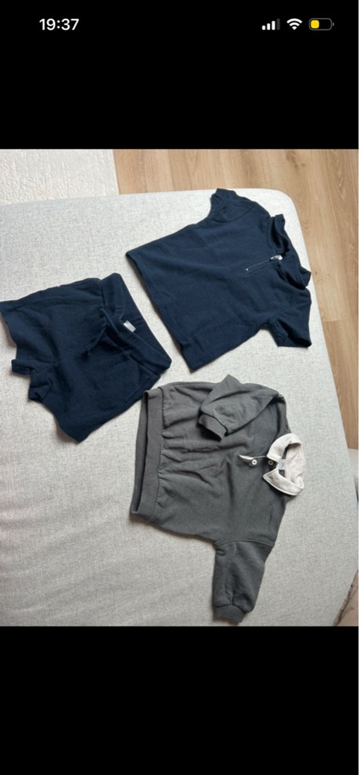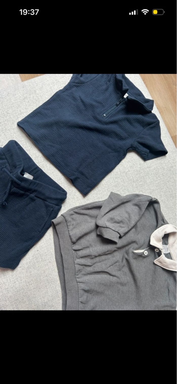 Lot vêtement bébé garçon h&m Ensemble short bleu marine taille 6-9 mois Pull gris taille 4-6 mois