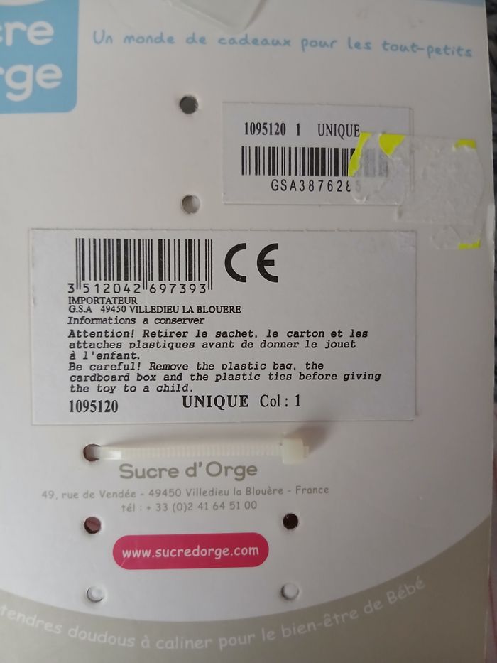 Neuf: Poupée-Doudou *Sucre d'orge
