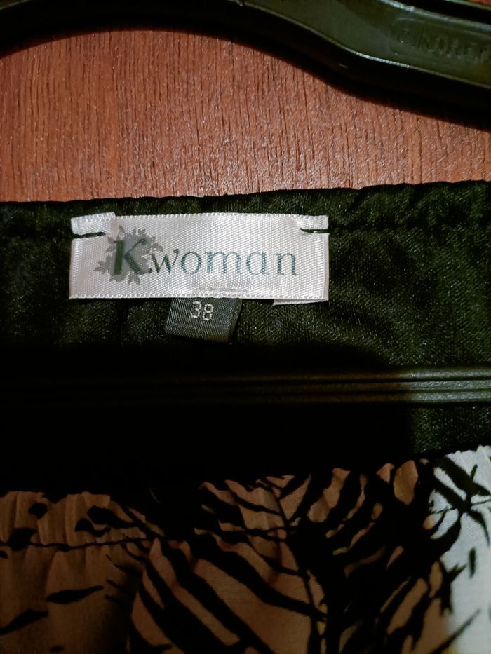 Robe noire et blanche motif à feuilles, asymétrique devant mesure 77 cm, 91 cm derrière, ficelles à nouer juste en dessous la poitrine.