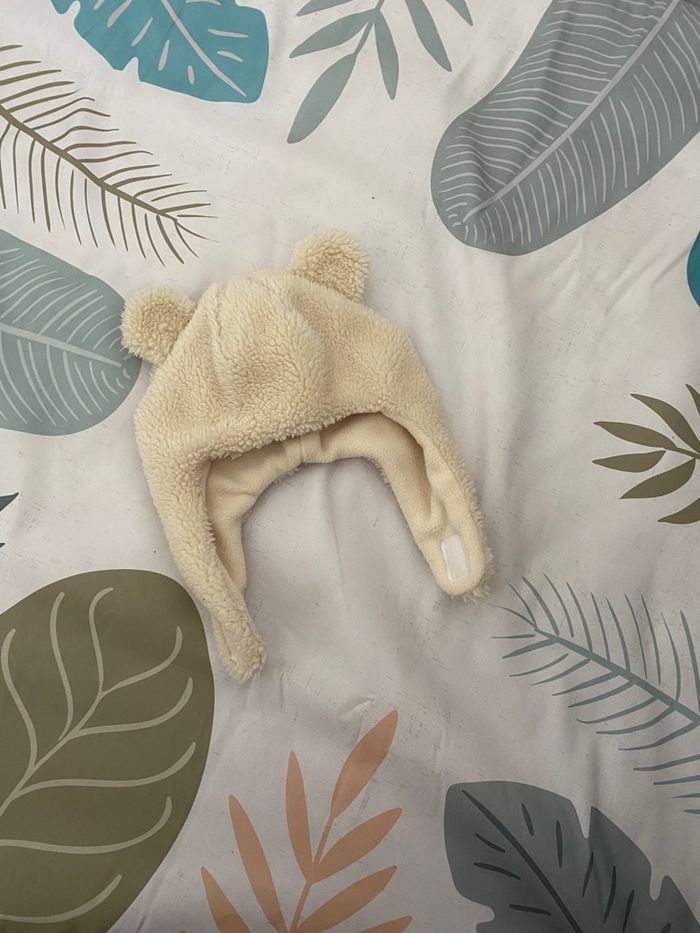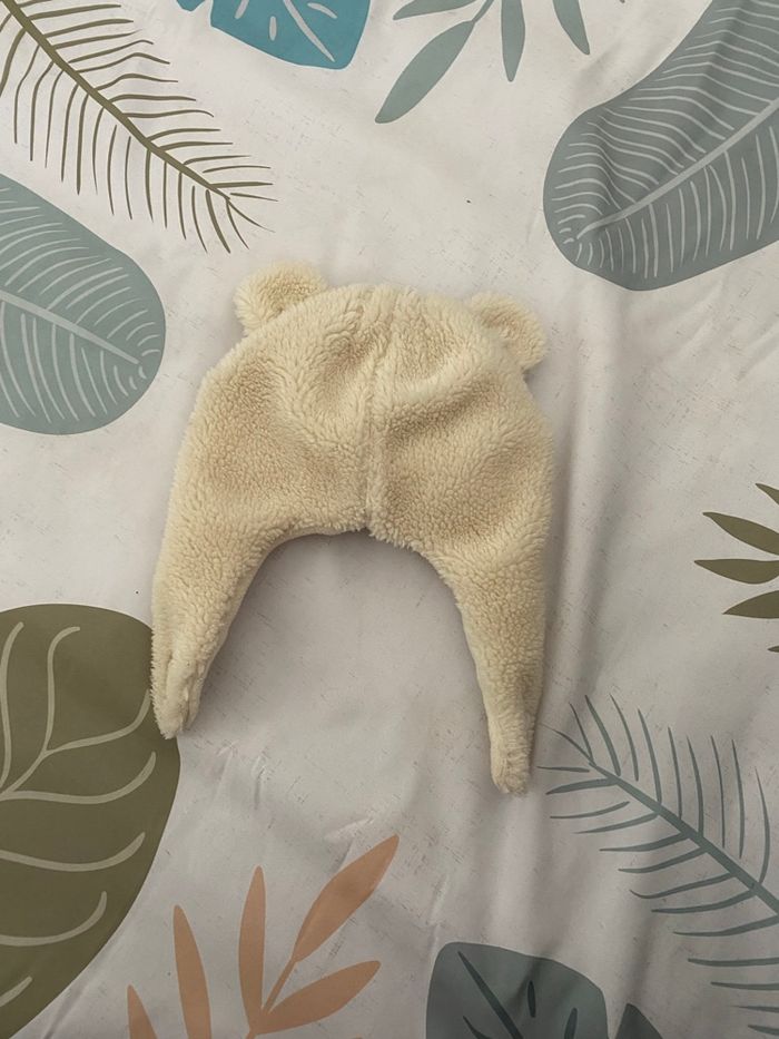Chapka bébé Bonnet bébé Excellent état porté 1/2fois Bonnet avec oreilles couvertes Caches oreilles bébé Chapka bébé avec scratch Utilisée 2x seulement, comme neuve ! Taille 3-6 mois Mixte Bonnet ourson