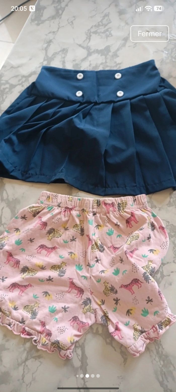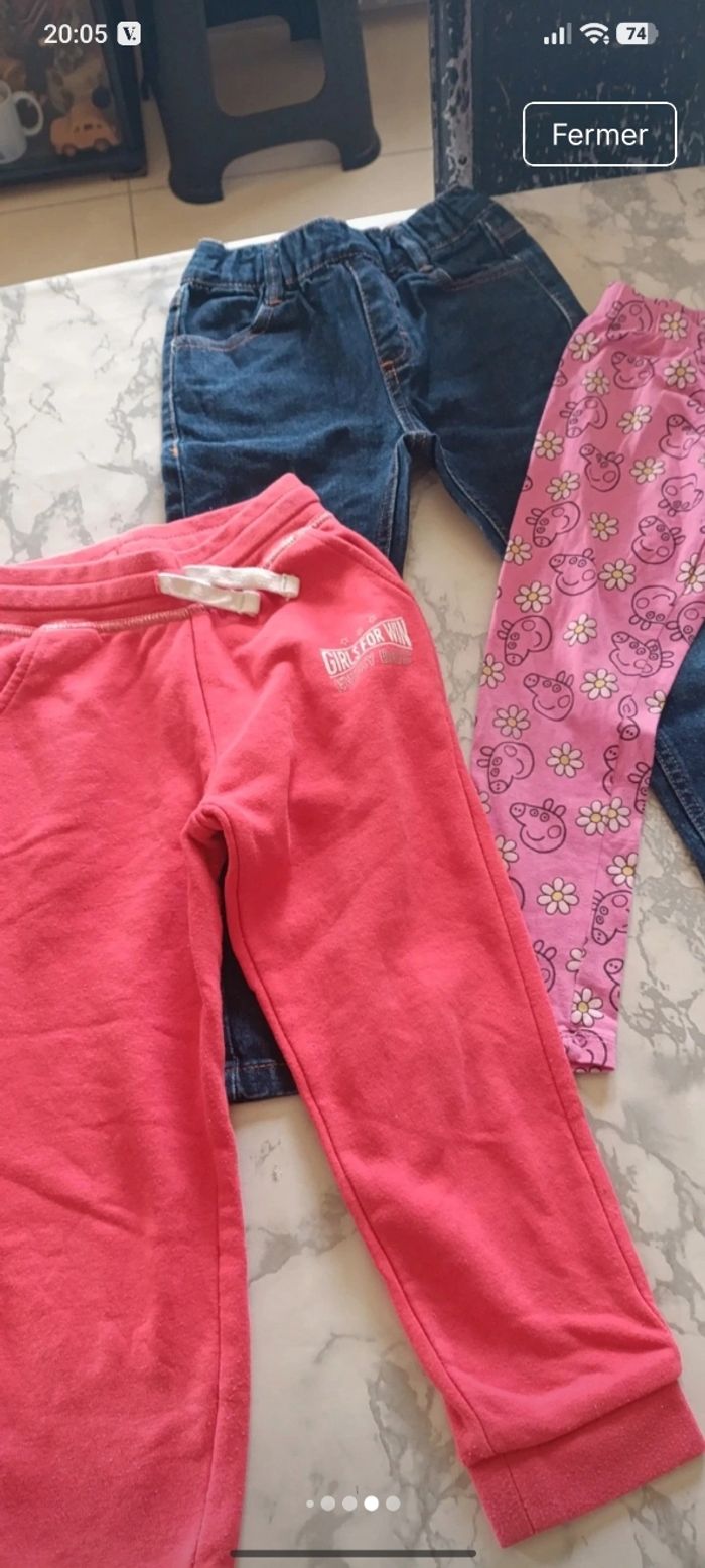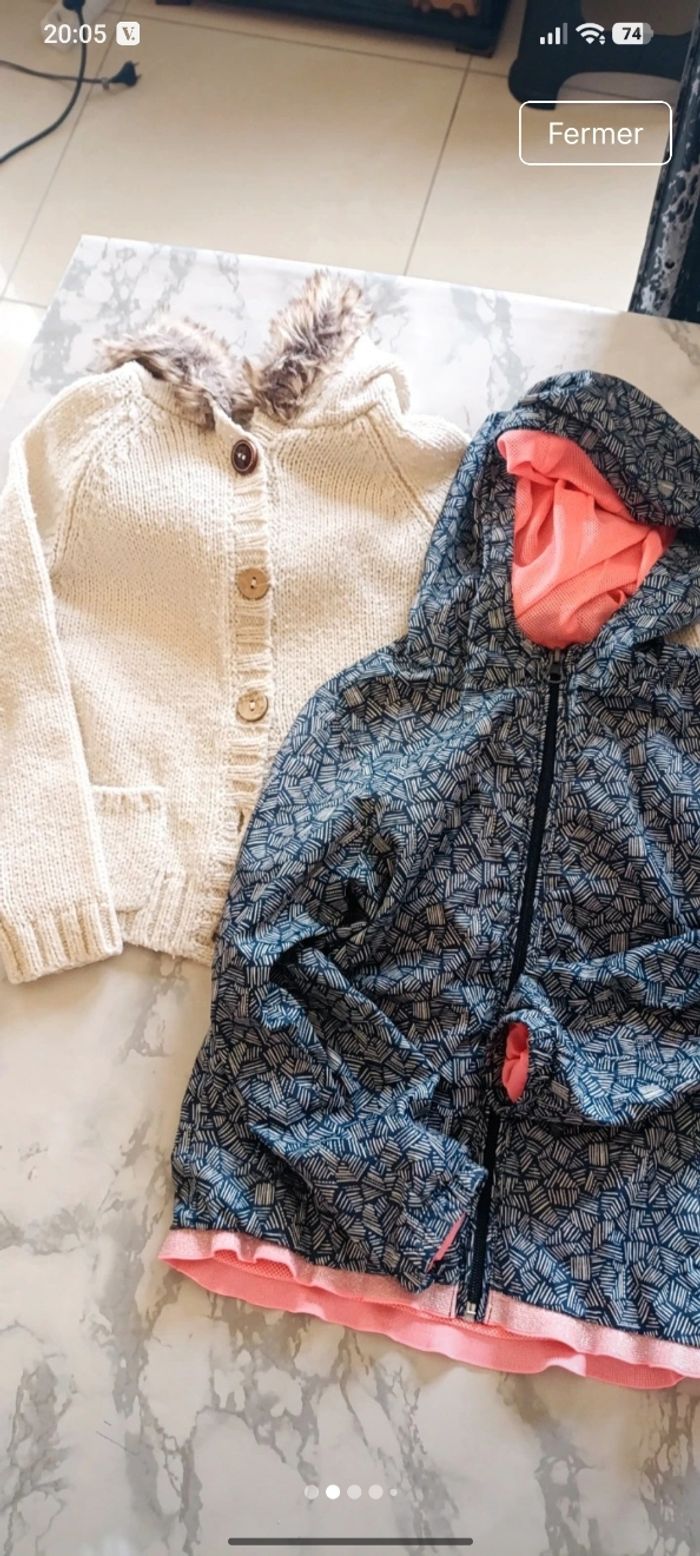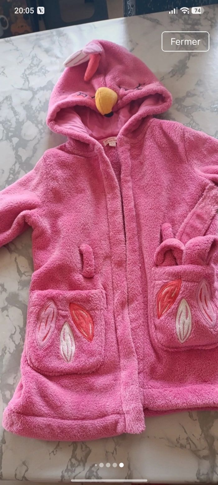 🌾Je vends ce joli lot complet pour petite fille en taille 5 ans, idĂ©al pour renouveler la garde-robe avec des piĂšces variĂ©es (saisons mixtes). Les articles sont en trĂšs bon Ă©tat, soignĂ©s et prĂȘts pour une seconde vie ! 📩 Contenu du lot (14 articles) : Hauts & T-shirts : 1 magnifique chemisier bleu Ă  fines rayures et col volantĂ©. 1 t-shirt gris "Paw Patrol" (Pat' Patrouille). 1 dĂ©bardeur rose Ă  rayures avec franges fantaisie. 1 t-shirt rose Ă  motifs smileys. 1 top Ă  rayures multicolores. Bas : 1 jean classique bleu foncĂ©. 1 pantalon de jogging rose confortable. 1 legging rose "Peppa Pig". 1 jupe patineuse bleu marine avec boutons dĂ©coratifs. 1 short lĂ©ger rose Ă  motifs lĂ©opard/animaux. Vestes & ExtĂ©rieur : 1 gilet en maille Ă©cru avec capuche bordĂ©e de fausse fourrure. 1 coupe-vent lĂ©ger Ă  motifs gĂ©omĂ©triques (doublure corail). Nuit & DĂ©tente : 1 peignoir "Flamant Rose" ultra doux avec capuche rigolote. 1 robe d'Ă©tĂ© lĂ©gĂšre / combishort Ă  motifs tropicaux. ✹ Points forts : Marques variĂ©es. Maison non-fumeur. VĂȘtements propres et sans taches. Envoi rapide et soignĂ© via Mondial Relay, Relais Colis ou Shop2Shop. N'hĂ©sitez pas Ă  faire un lot avec d'autres articles de mon dressing pour rĂ©duire les frais de port !