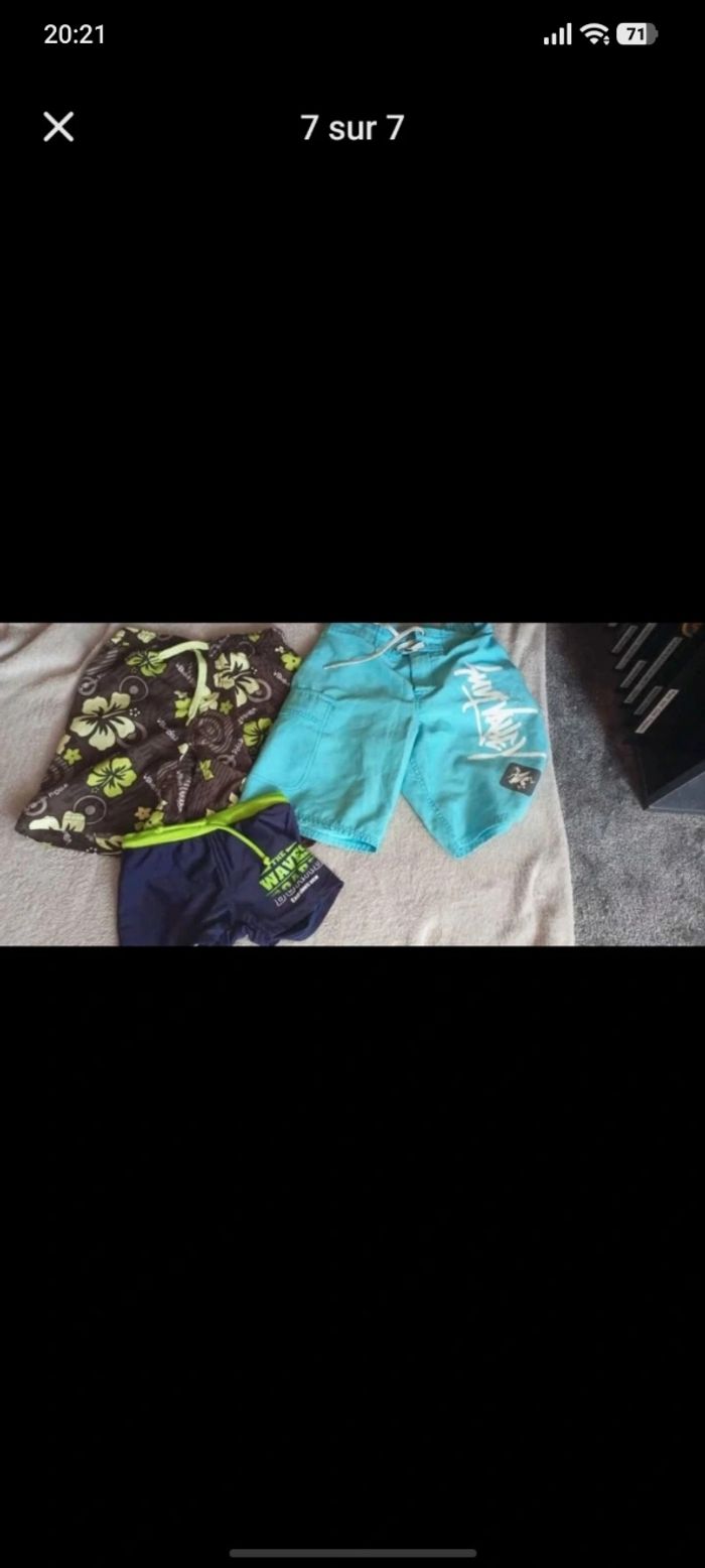 👕 Je vends ce super lot de vêtements pour garçon en taille 6 ans, parfait pour renouveler la garde-robe pour toutes les saisons ! Les articles sont en très bon état, soignés et prêts pour une seconde vie. 📦 Le lot contient : Vestes : 1 veste polaire marron/taupe, bien chaude avec fermeture éclair. 1 coupe-vent bleu électrique avec détails zip tricolores (style urbain). Hauts : 3 tee-shirts à manches longues (un bleu avec boutons, un rouge à motif, et un indémodable à rayures marines). 2 chemisettes à manches courtes à carreaux (une verte/bleue et une orange/beige). Bas : 2 shorts de bain (un marron à fleurs tropicales et un bleu turquoise). 1 boxer de bain bleu et vert fluo. 2 shorts en tissu (un à carreaux verts et un short en jean confortable). ✨ Les points forts : ✅ Polyvalent : Des vêtements pour l'école, le sport et la plage. ✅ État : Très propre, pas de taches ni de trous. ✅ Prix : Petit prix pour l'ensemble. 🏠 Maison non-fumeur. 📦 Envoi rapide et soigné via Mondial Relay, Relais Colis ou autre.