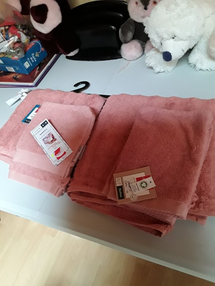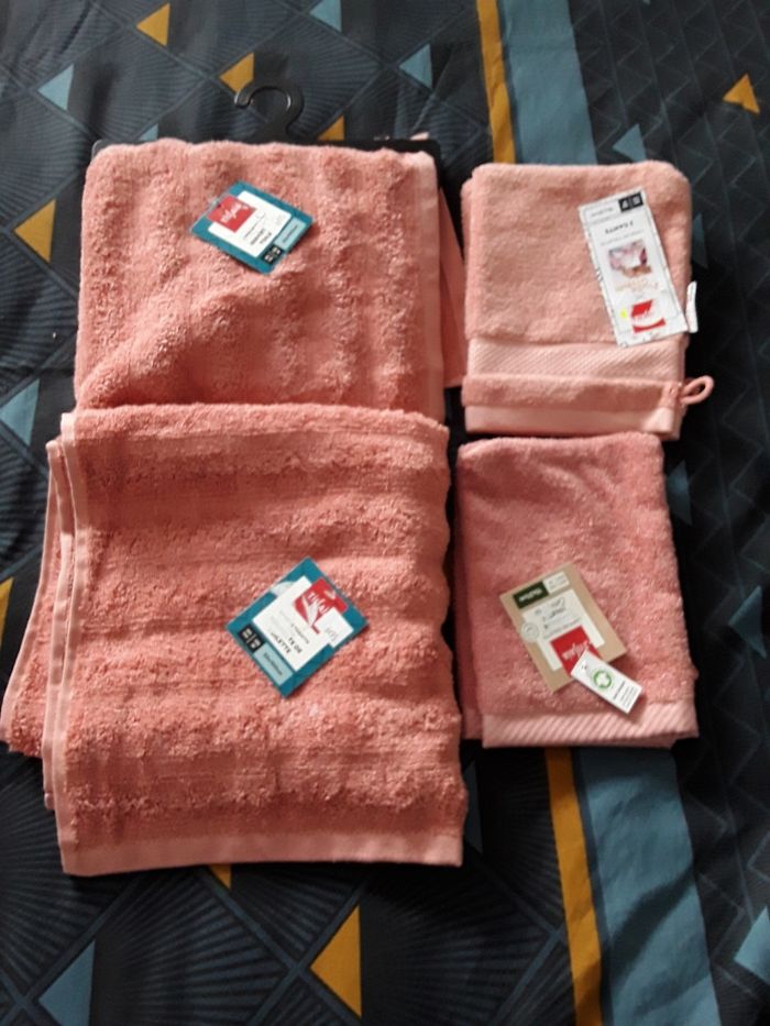 Lot de 2 serviettes 50x100 vieux rose Et 4 gants le tout est neuf