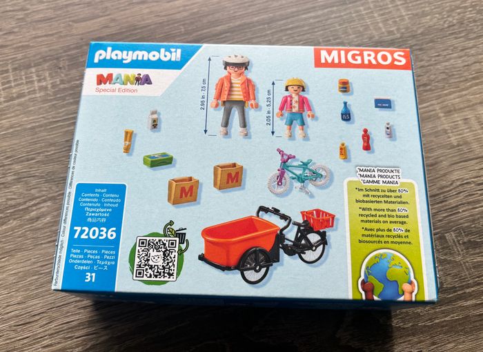 Playmobil Mania Vélo-cargo Migros N° 72036 31 pièces neuf emballage scellé Voir TOUTES les photos