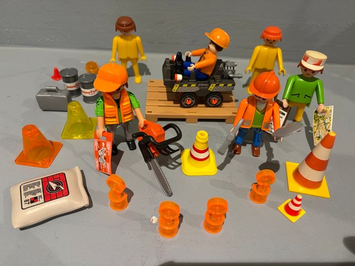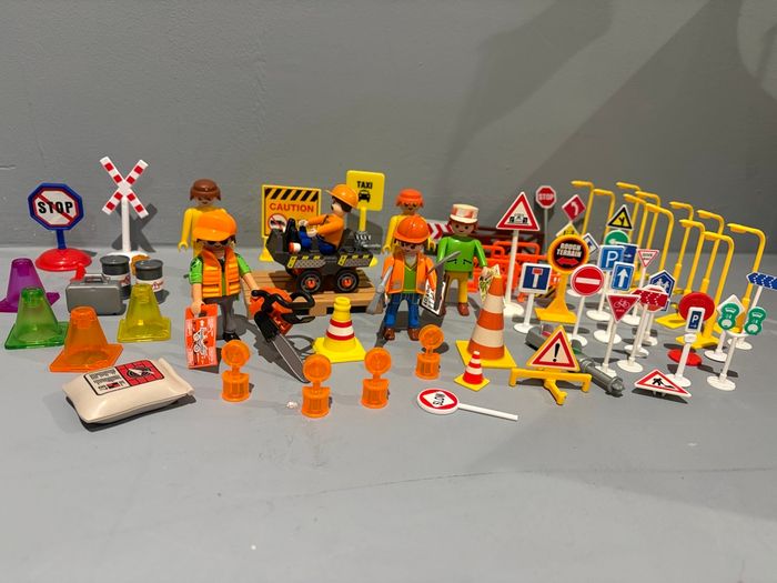 Playmobil chantier travaux publiques 6 personnages 1 vehicule 60 panneaux signalisations 17 Accessoires