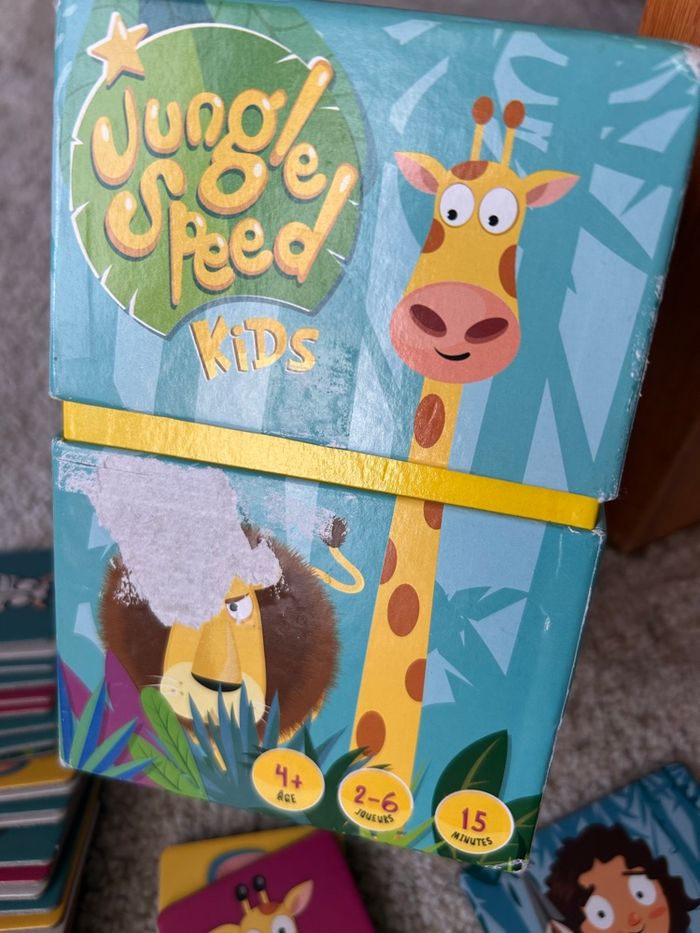 Jeu jungle speed Boîte un peu abîmée mais l’intérieur est intact. Quasi neuf.