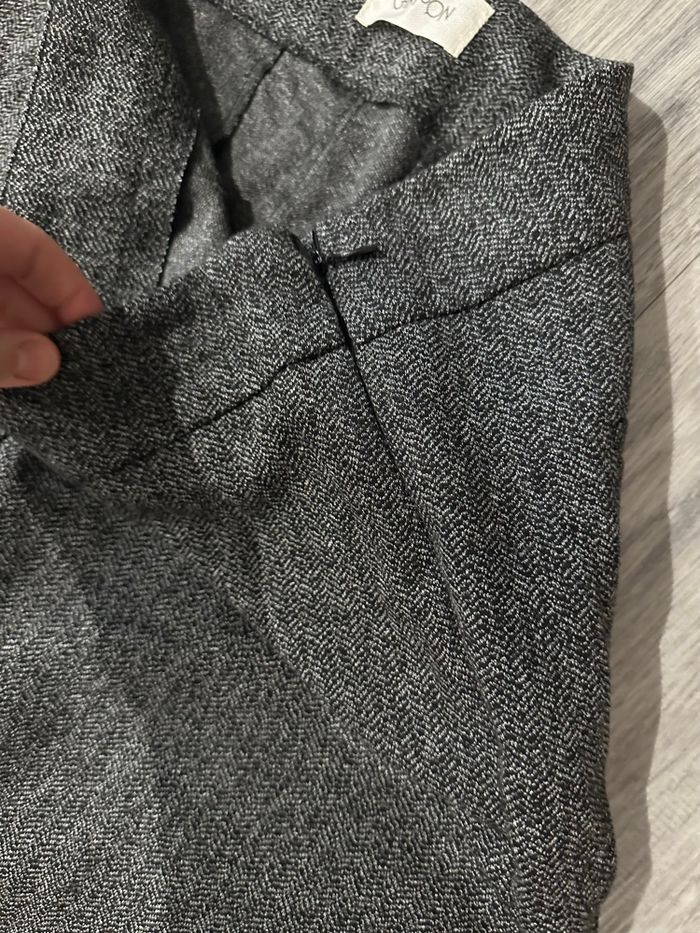 Pantalon droit - Excellent état - Taille 48 équivalent 4XL Dimensions en bas de l’annonce - Gris moucheté noir - Marque Cartoon - Zip sur le côté - Pas d’étiquette de taille ni de matière Dimensions: - 46 à 50cm à la taille - 60cm entre jambe - 90cm de long