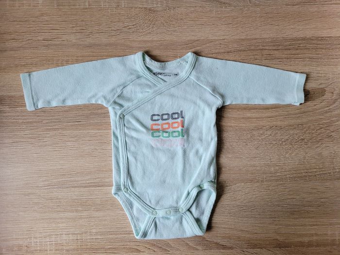 Lot de 3 bodys Ouverture par le devant croisée Manches longues Mieux by Gémo Le vert pale à une petite tache (voir photo) mais ils sont en bon état.