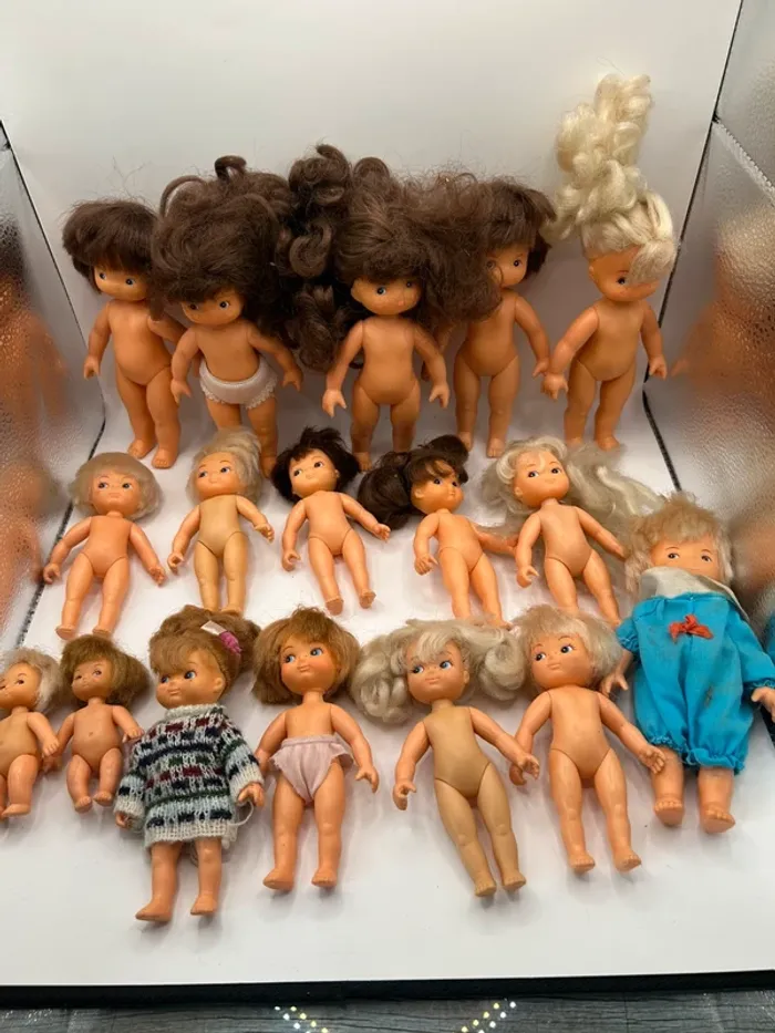 Lot de poupées Famille Glady – Delavennat. Ensemble vendu en lot complet ou à l’unité 5€. Poupées nues. État général : bon état d’usage / joué, il y a un bébé avec le visage « frotté » Cheveux en état correct. Pas de casse constatée. Idéal pour collectionneur, customisation ou compléter une famille Glady.