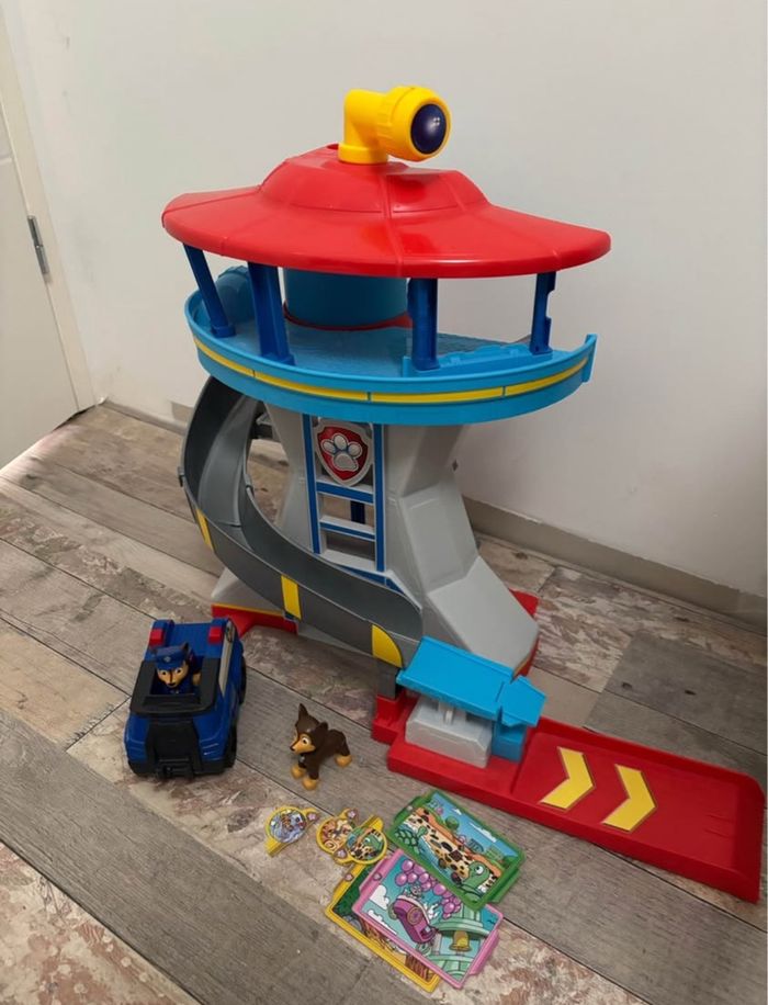 Tour de contrôle Pat’ Patrouille complète en parfait état. Vendue avec la voiture de Chase, sa figurine et les cartes/jetons de mission visibles sur les photos.