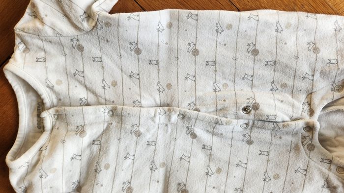 Pyjama léger en coton pour bébé en taille 6 mois. plutôt pour l'été ou la mi-saison. Mixte / unisexe. Marque Orchestra. Motifs petits lapins. Très bon état hormis quelques bouloches. Maison non fumeur et sans animaux.