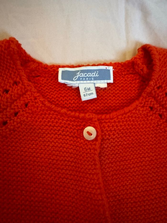 Très joli lot bébé taille 3 mois / 6M (67 cm) comprenant : • 1 cardigan Jacadi blanc à motifs rouges (6M - 67 cm) • 1 gilet Jacadi rouge en maille, boutons nacrés et finition festonnée (6M - 67 cm) • 1 gilet noir Natalys (3M) Belles pièces de marques haut de gamme, qualité irréprochable et matières confortables. Parfait pour une garde-robe chic automne/hiver ou pour un joli cadeau naissance. État : très bon état général.