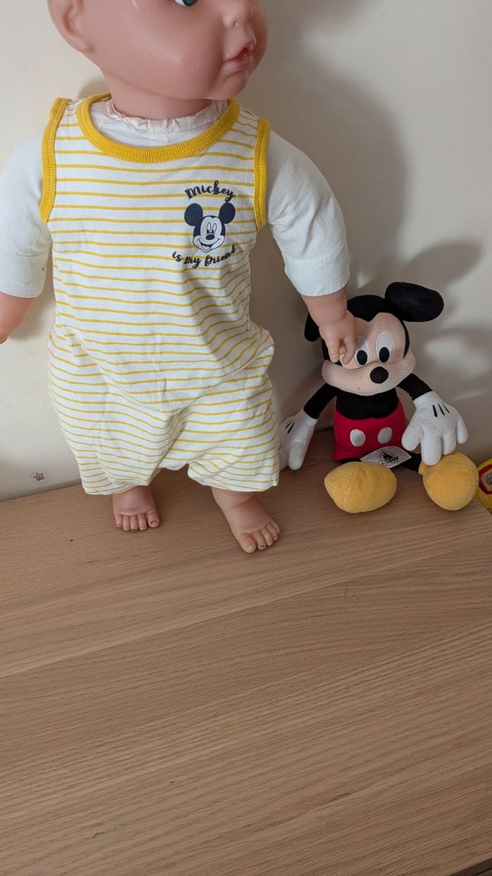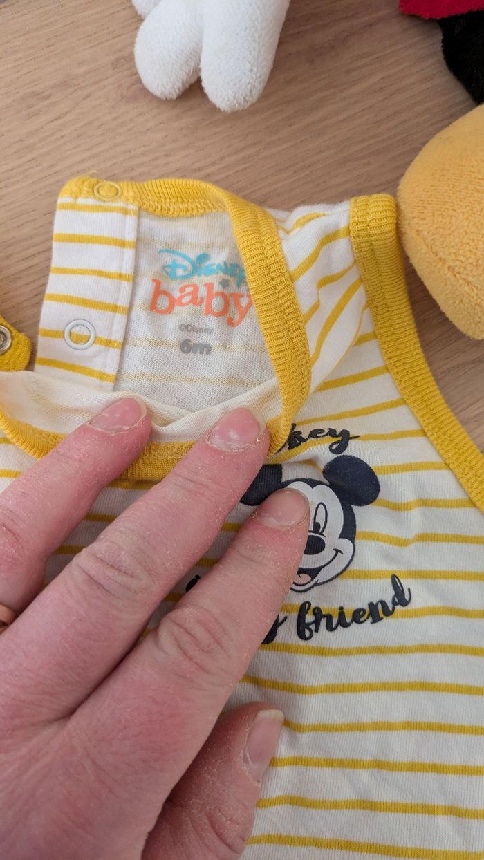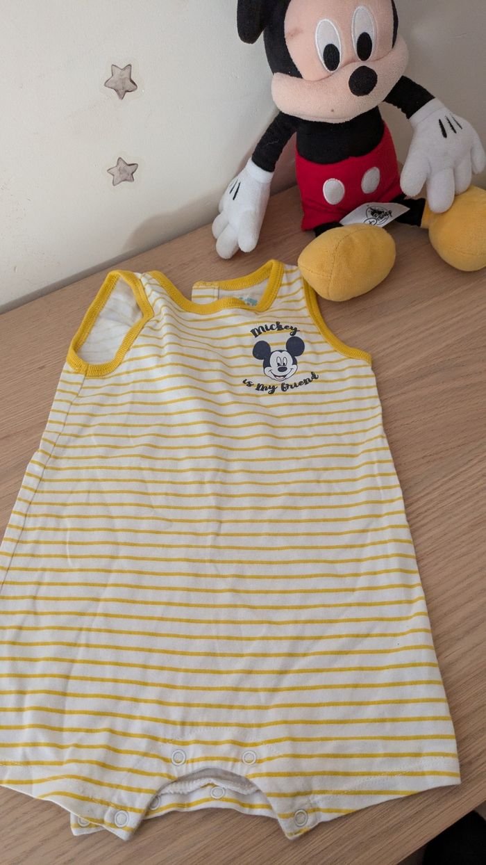 Lot de 2 combi été taille 6 mois très bon état, pratique avec les pressions en bas des jambes pour le change 1 de la marque disney et 1 de la marque bébé rêve