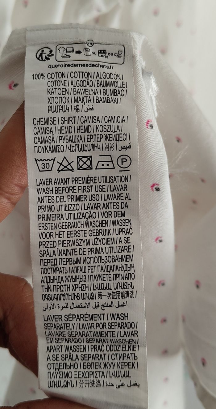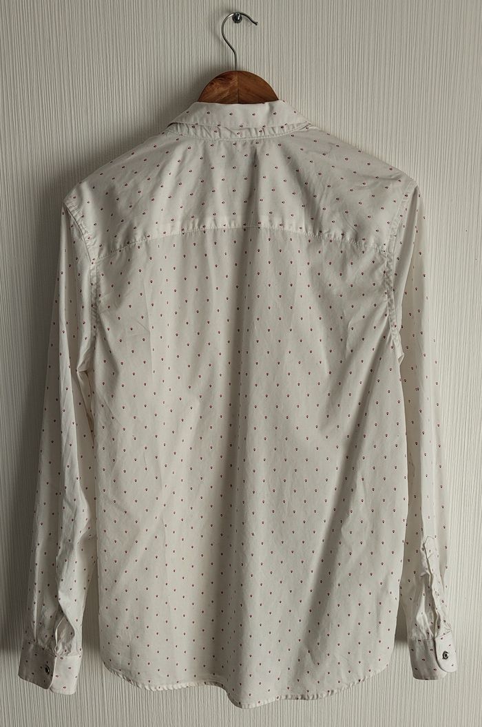 🧔 Chemise à manches longues, coupe regular fit. Fermeture bouton. Couleur blanc avec des touches de bleu foncé et rose. 🧒 Taille M 🧔 Marque : Kiabi 🧒 Très bon état. Un défaut d'origine voir photo.