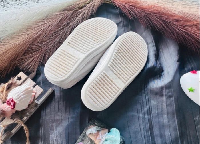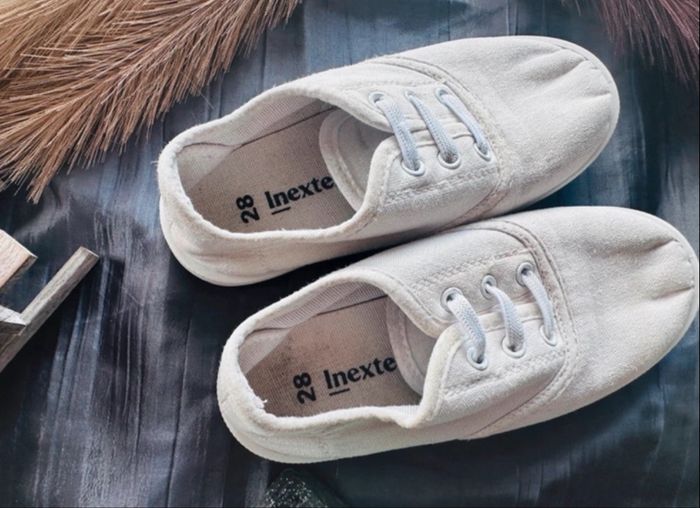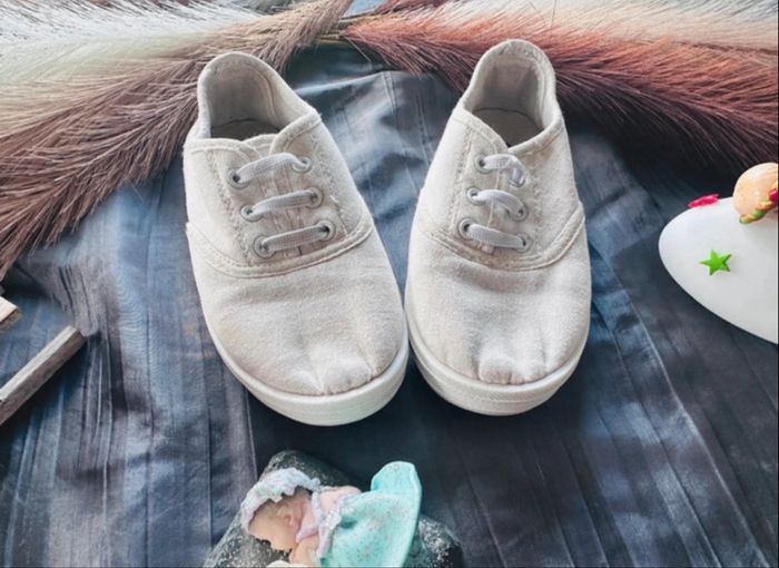 Jolie paire de petites tennis en toile de couleur blanc cassé / écru. Très confortables et légères, elles sont parfaites pour le printemps ou l'été ! ☀️ • Casual, intemporel (se porte aussi bien avec un jean qu'une petite robe). • Lacets élastiqués (très pratiques à enfiler sans faire de nœuds). • Bon état général. • taille 📏 : pointure 28