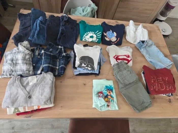 🐯 Lot de 28 vêtements en taille 3 ans 🐯 3 pull 3 chemise 9 tee shirt 4 haut manche longue 4 jean 1 pyjama 2 piece manche longue 1 pyjashort 2 short 1 short de bain 28 vêtements Pas de tache, ni trou.