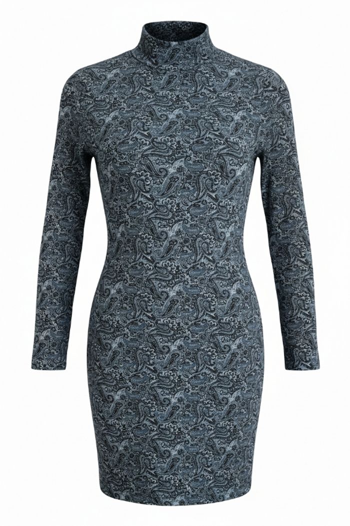 👩 Robe manches longues avec col roulé. Imprimé bandana. 👩 Taille XS (Mesure voir photos) 👩 Marque : Oodji 👩 Matière : 95% Coton 5% Polyester 👩 Très bon état